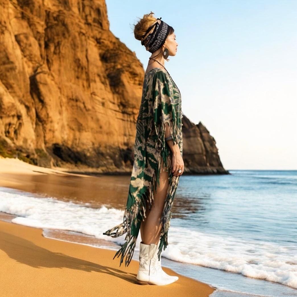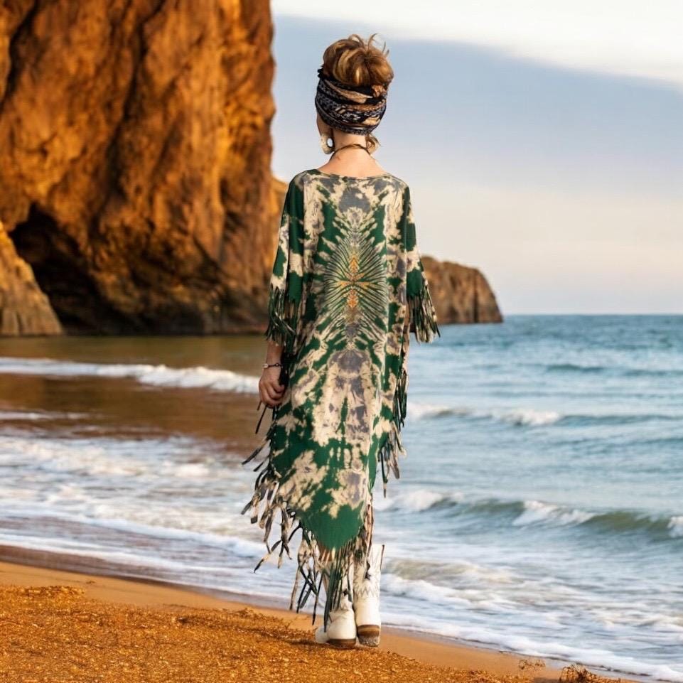 Handmade Tiedye Fringe Kaftan: Boho Festival Cotton Poncho – Arlo
