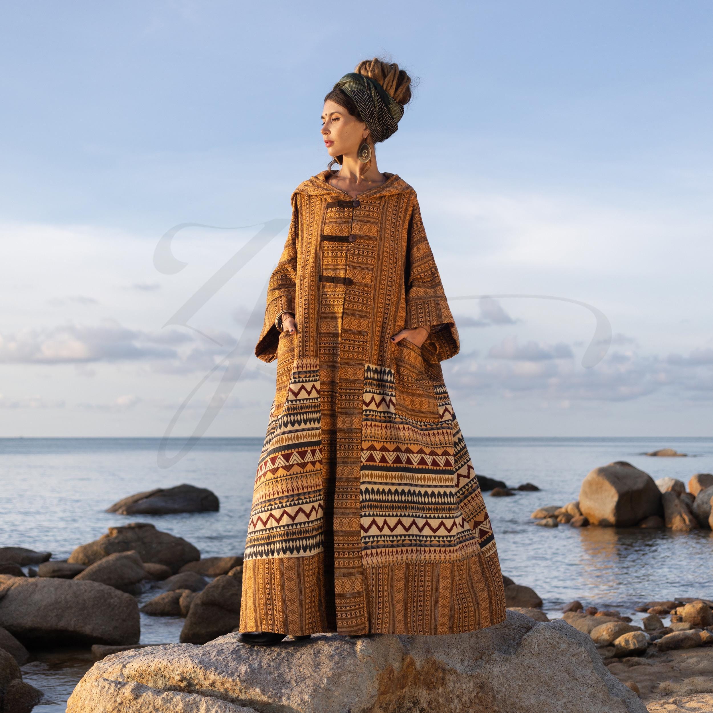 * Luxurious Hooded Design: The stylish hood and wide, flowing sleeves create a relaxed, opulent silhouette, while the drop shoulder design adds effortless boho charm.