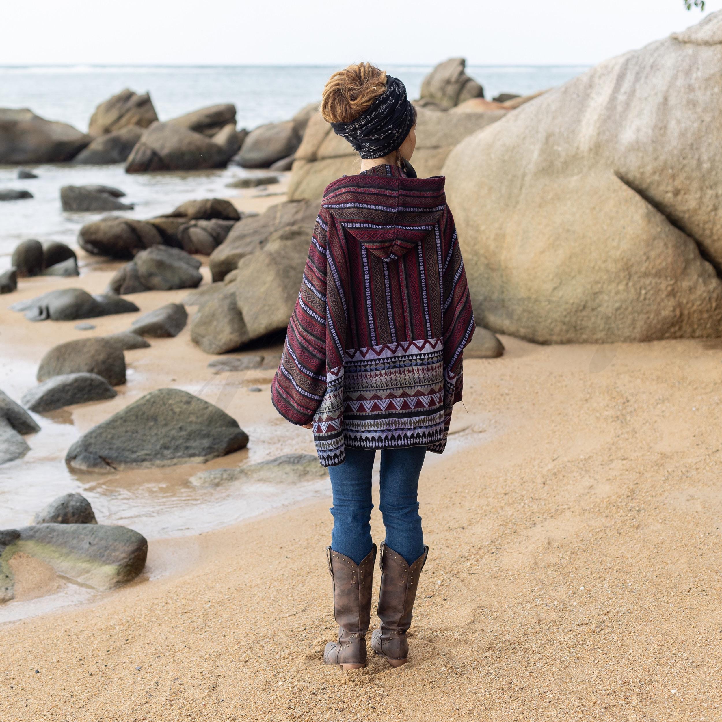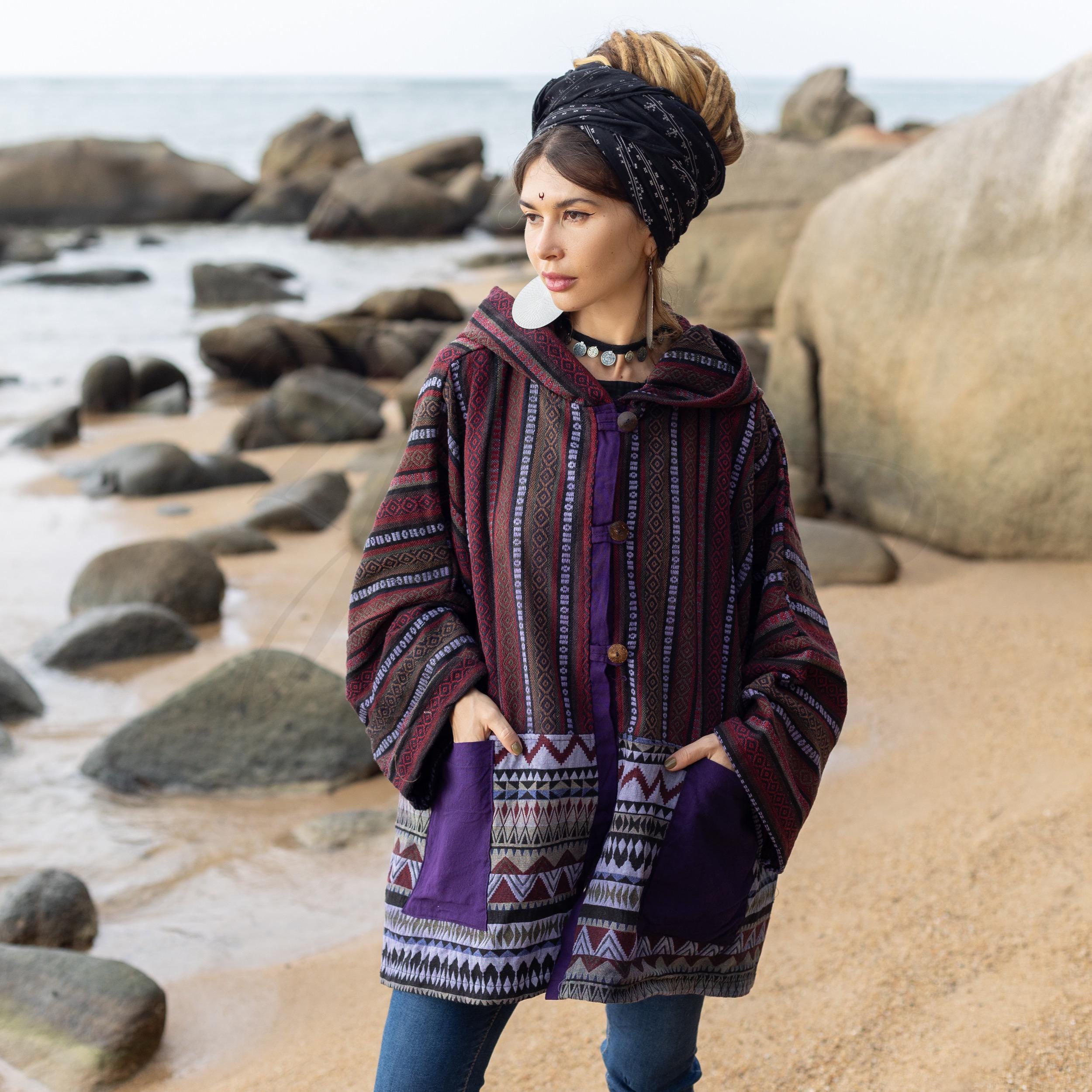 Wrap yourself in cozy bohemian elegance with the Mulberry Sahara Weave Hooded Patchwork Jacket, a handwoven Gheri masterpiece combining rich mulberry tones with intricate patterns. Featuring a stylish hood, long sleeves, and spacious front pockets, this jacket blends heritage-inspired design with modern functionality. Perfect for layering during cooler seasons, festive gatherings, or casual outings, it’s a versatile must-have for free spirits and boho fashion lovers.