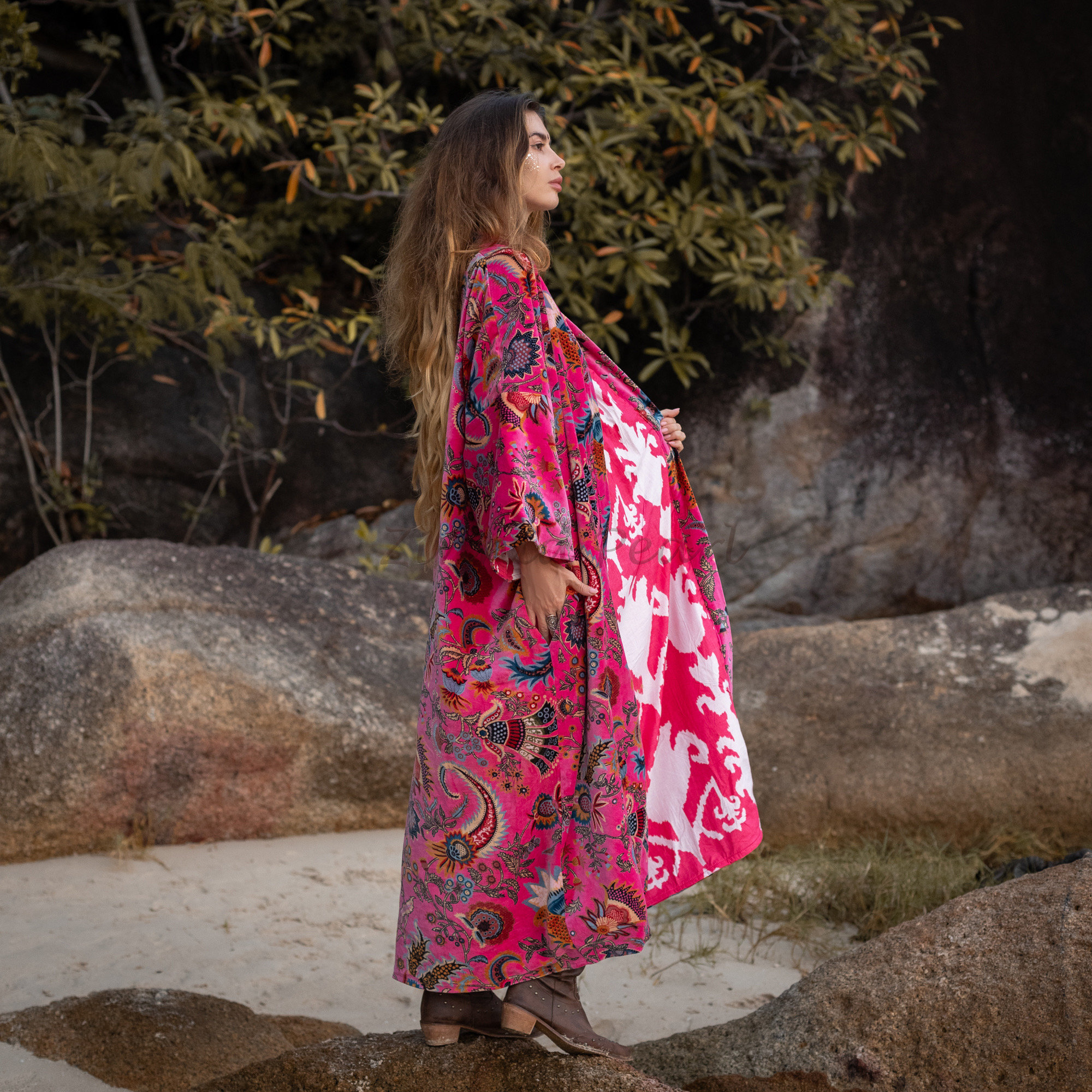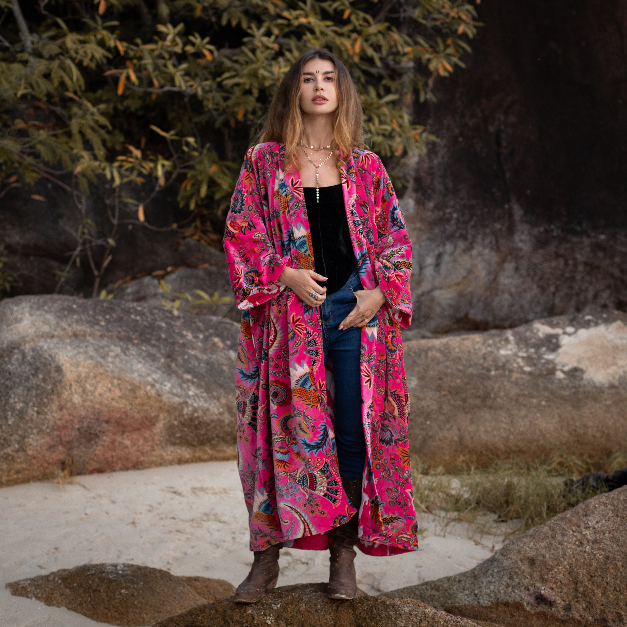 Unleash your inner goddess and express your unique style with the MAI Velvet Kimono Jacket. Shop now and discover the magic of ZinniaPearl.