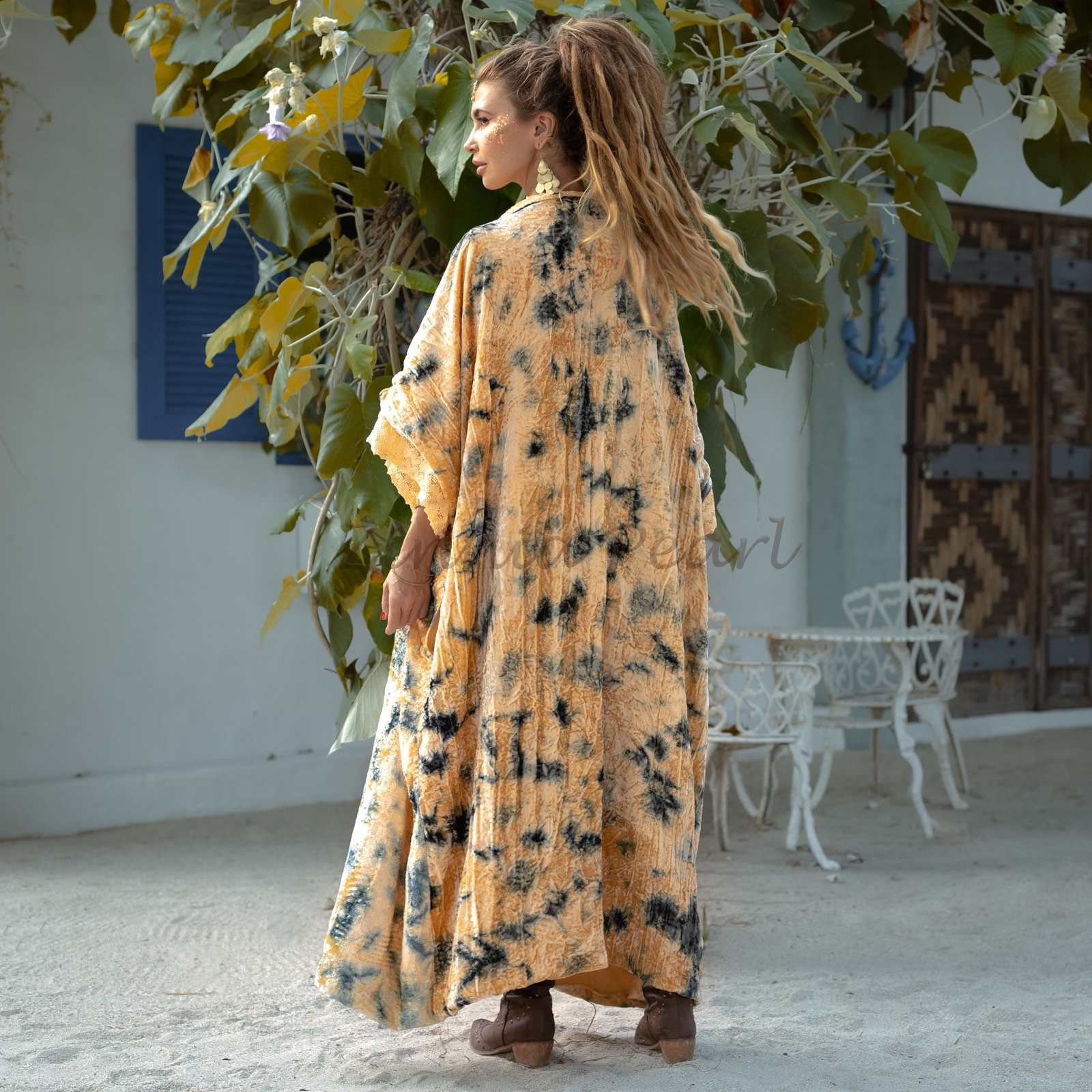 The rich velvet fabric adds a touch of opulence to your ensemble, while the long duster coat silhouette exudes sophistication and glamour. Whether you're dressing up for a special event or seeking a unique gift, the Misty Enchantment kimono promises to captivate with its timeless appeal and versatile elegance.