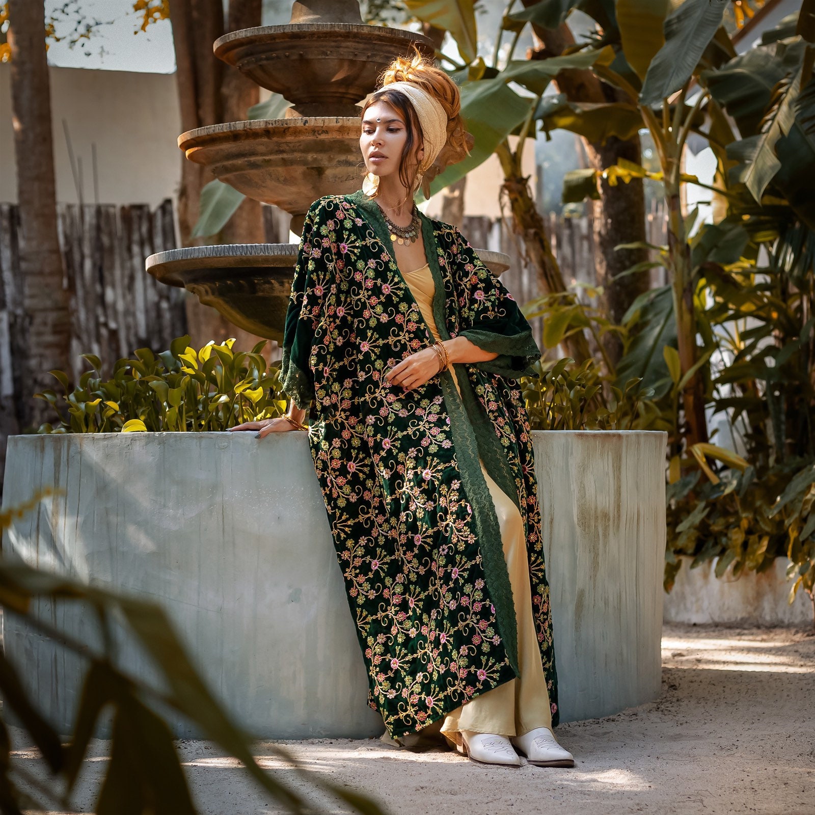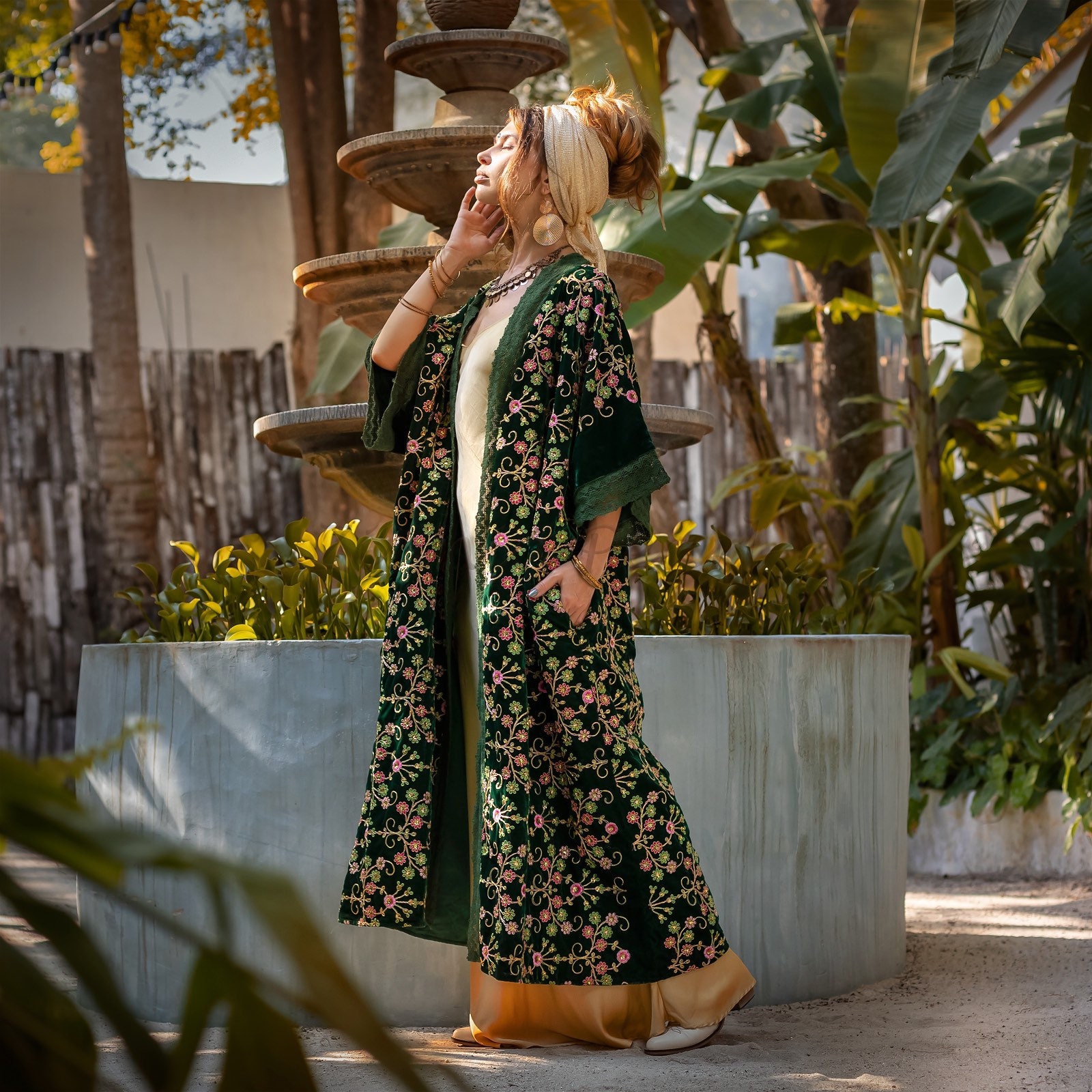 Misty Enchantment Long Velvet Kimono Duster Coat – One Plus Size Luxury for Special Events