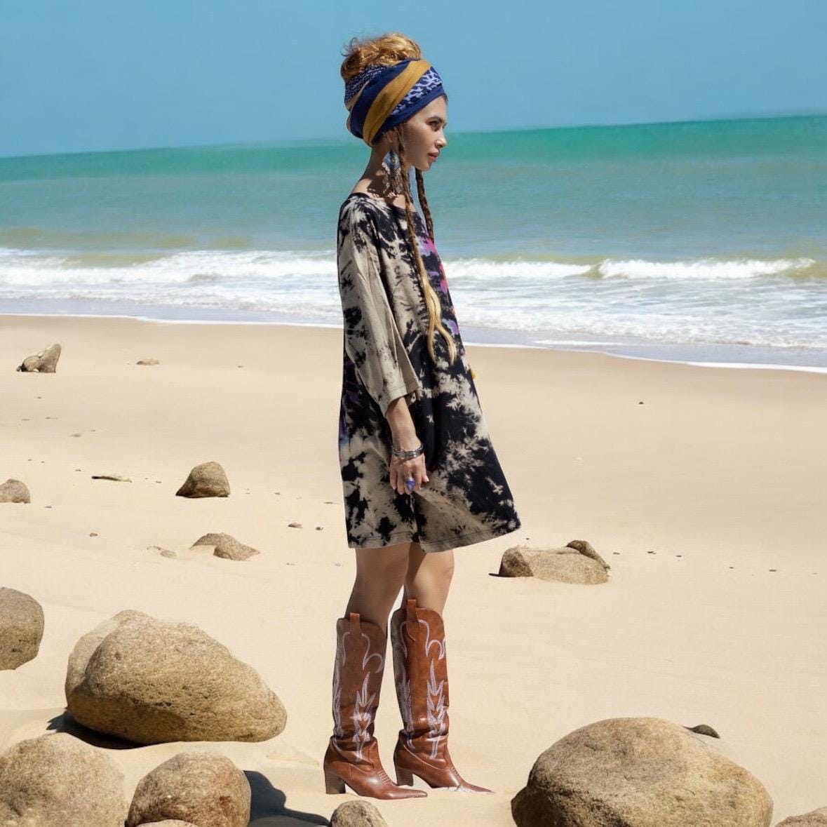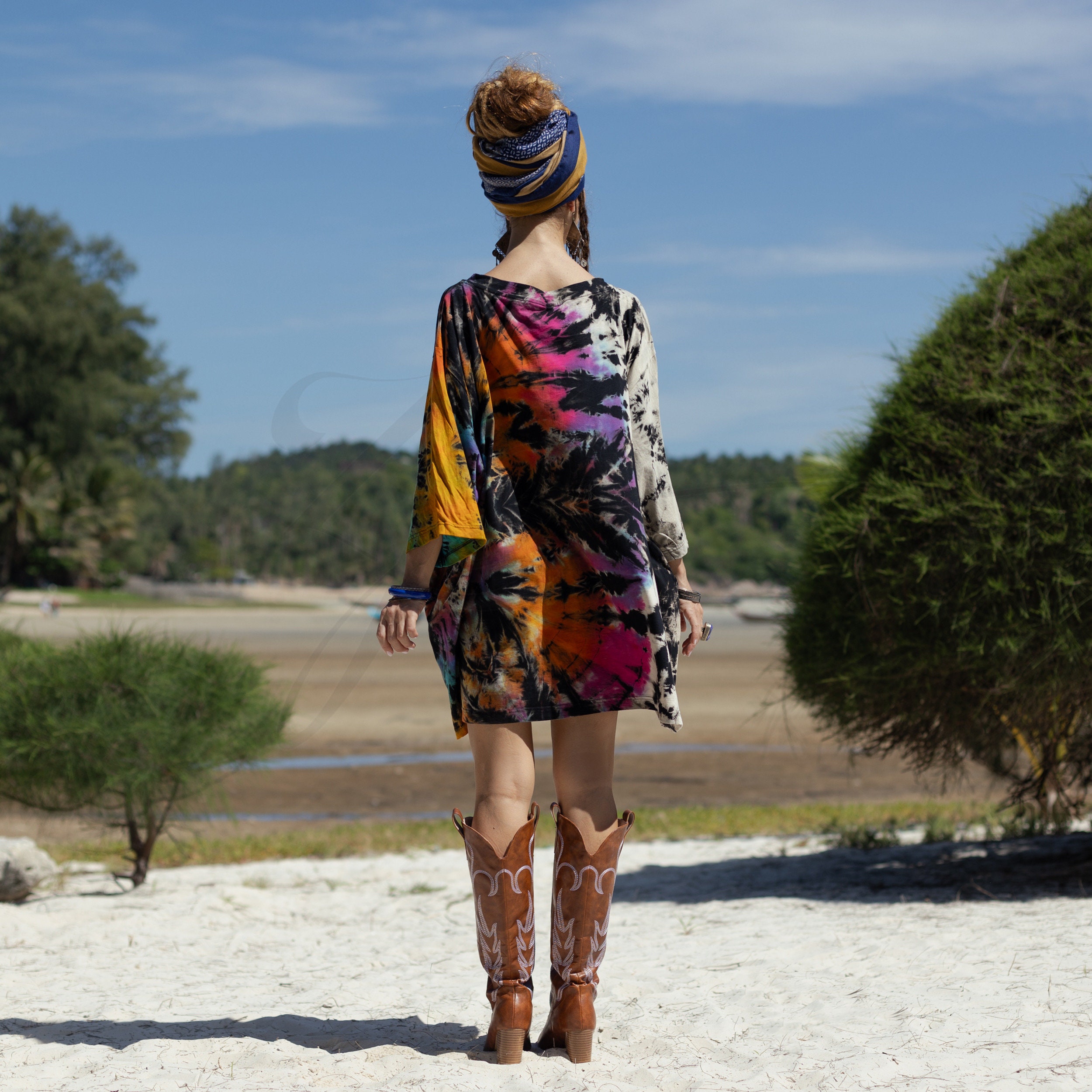 Monstera Ember Tie-Dye Boho Tunic Dress ✨