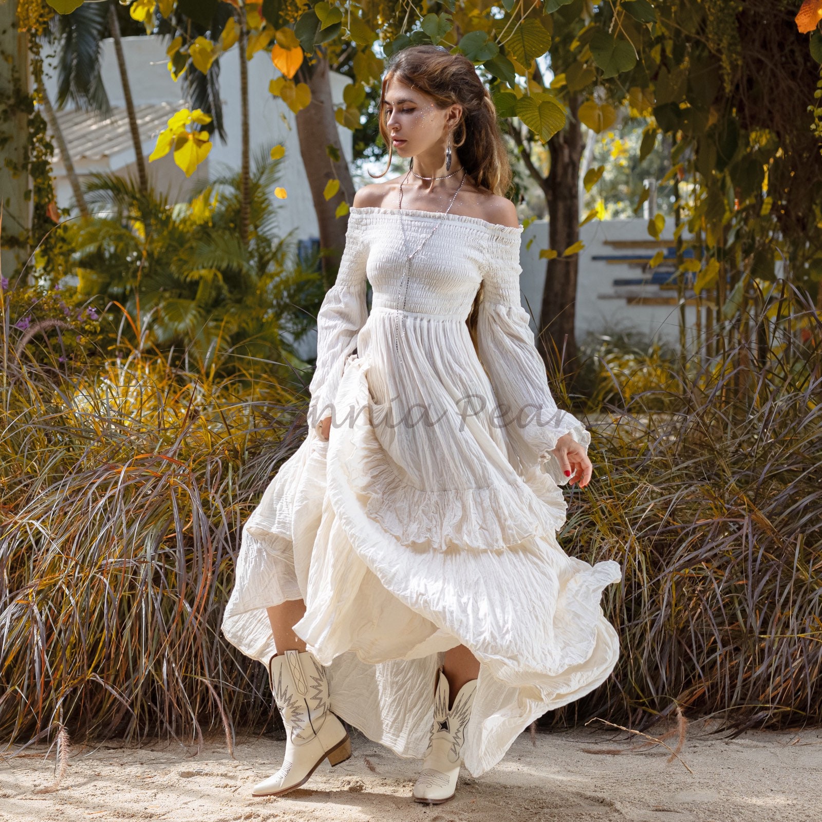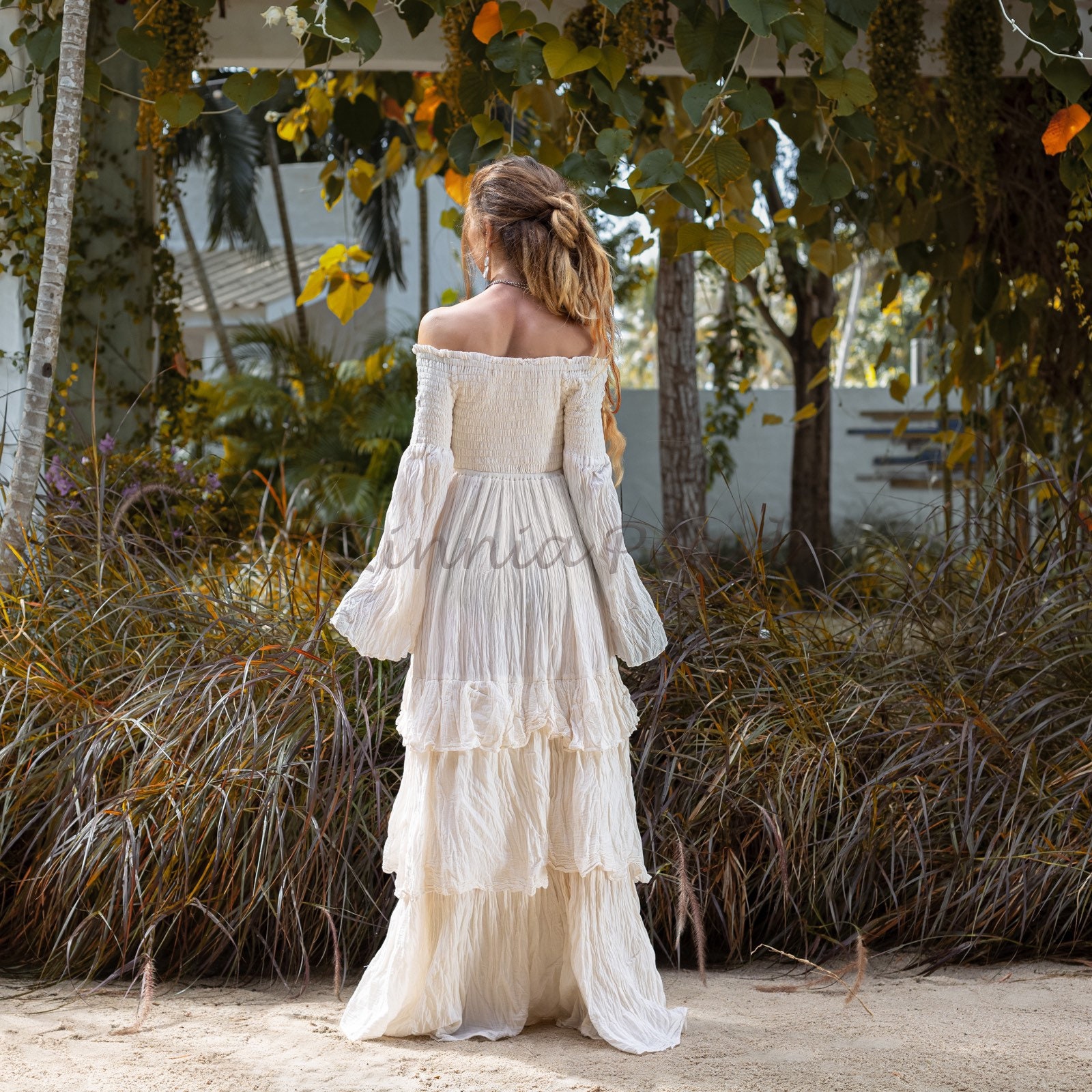 Off-Shoulder Boho Wedding Dress – Tiered Raw Cotton Maxi Dress | Lucia Cream