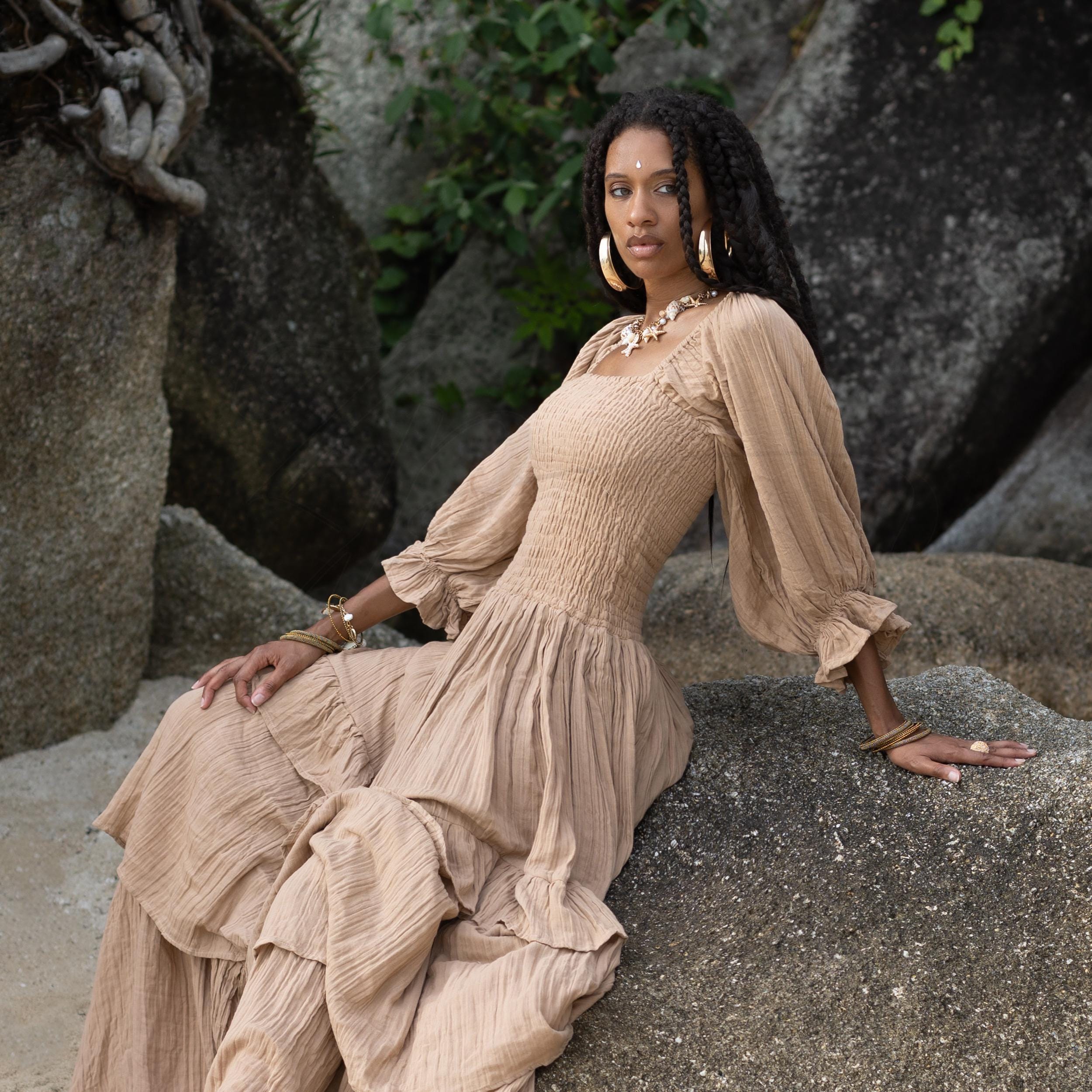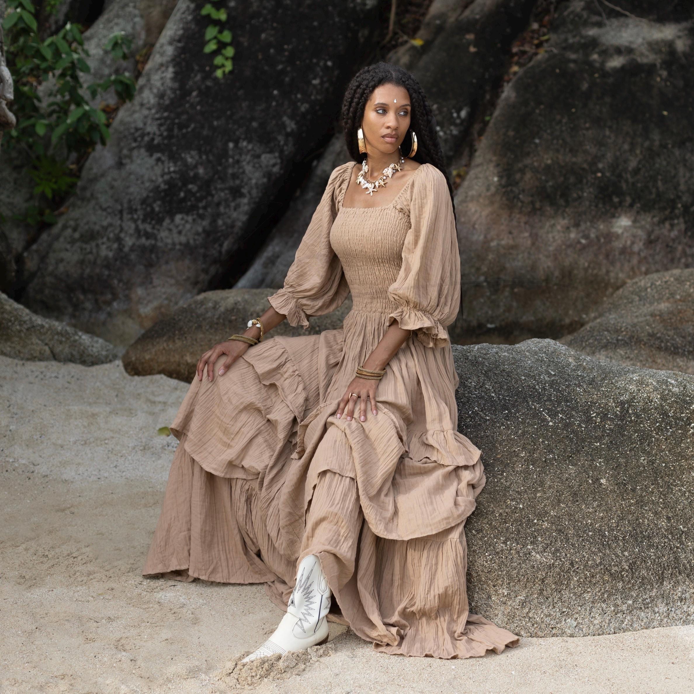 🌀 Explore natural cotton wedding gowns, ruffled dusters, and boho treasures! 🌟✨ Perfect for free-spirited elegance. 🌿💕