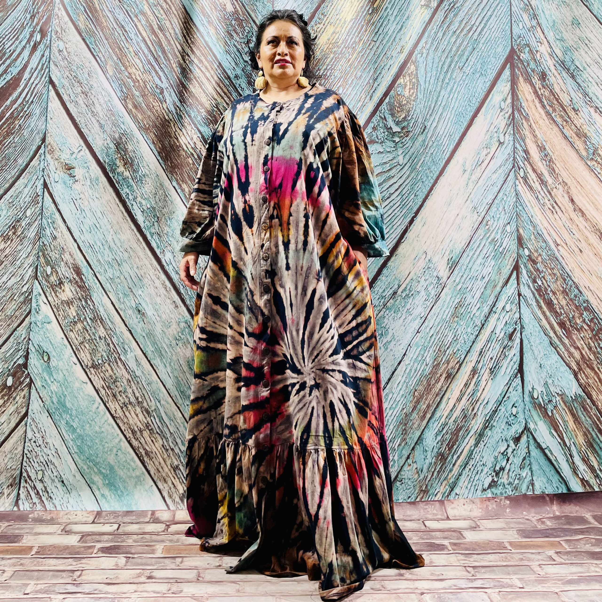 Plus Size Hand-Dyed Cotton Abaya Kaftan – Boho Festival Maxi Dress | Nadia
