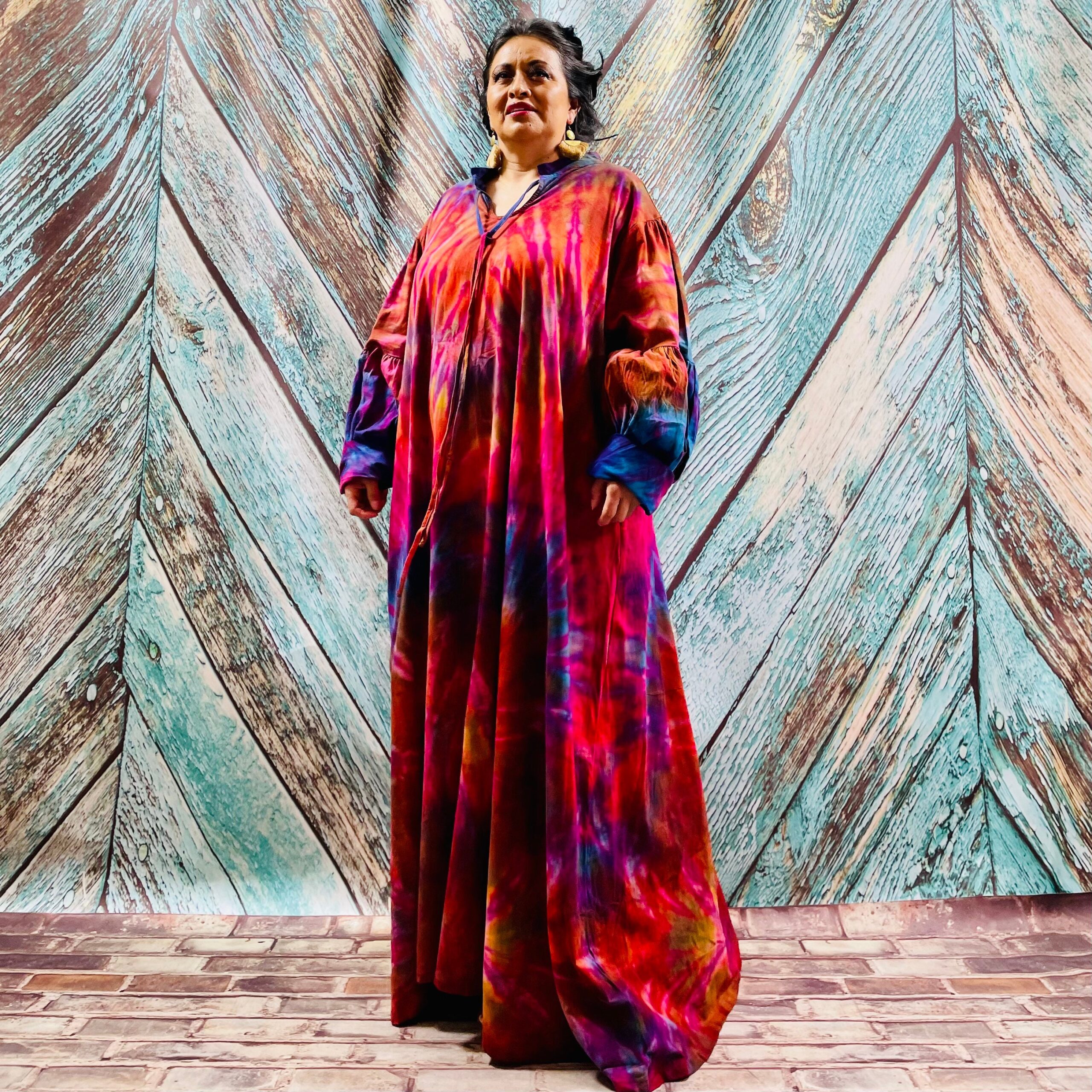 Nadia Plus Hand Tie Dye Abaya Gown Kaftan Maxi Dress Festival Dress Stage Wear Caftan ONE PLUS SIZE Boho Hippie Jersey Cotton