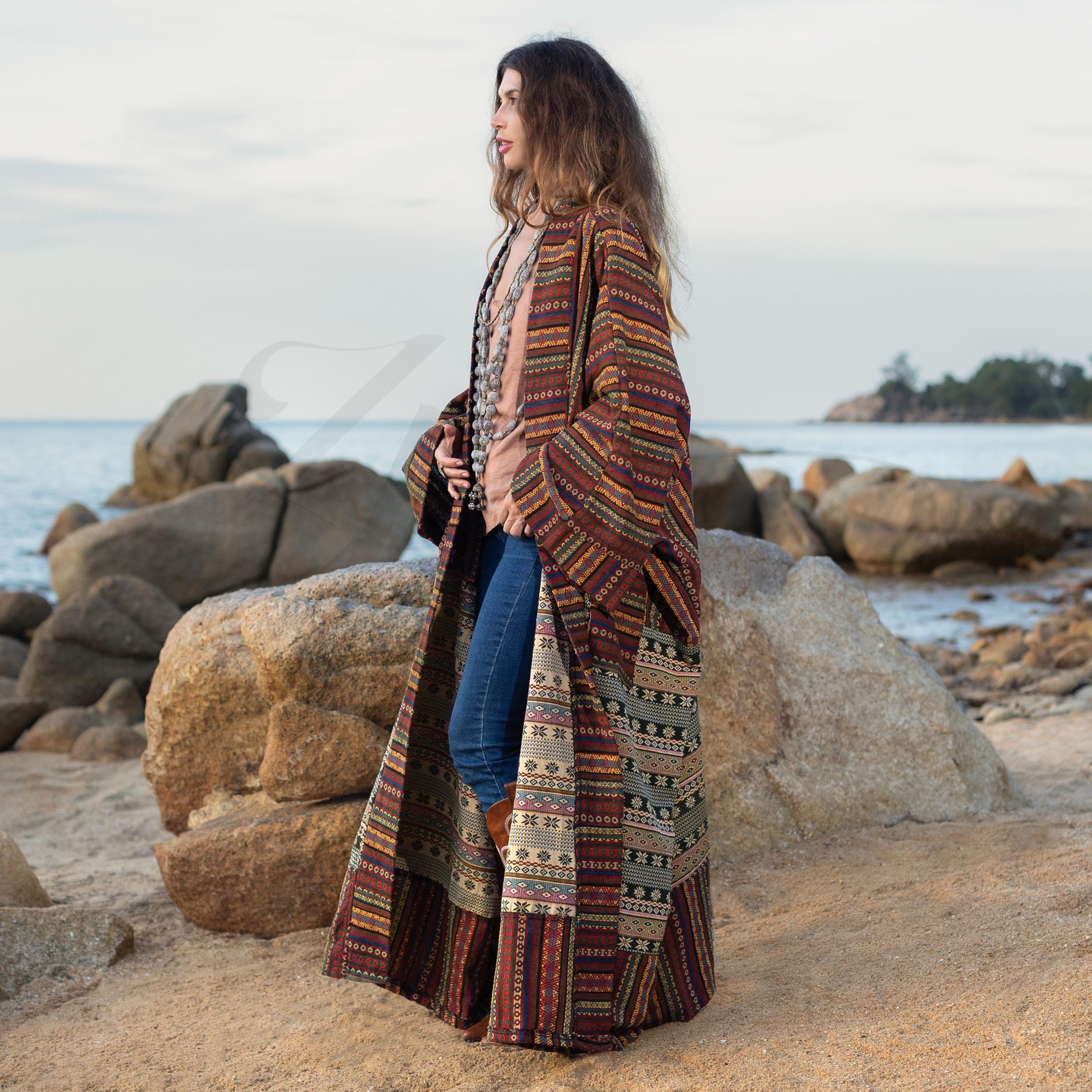 Meticulously handwoven by skilled artisans, this Autumn Grove kimono robe features intricate patterns reminiscent of the warm hues and rich textures of fall foliage. Crafted from 100% handwoven cotton for ultimate comfort, the opulent fabric drapes gracefully over your body, while the full length and grand sleeves create a sense of regal majesty.