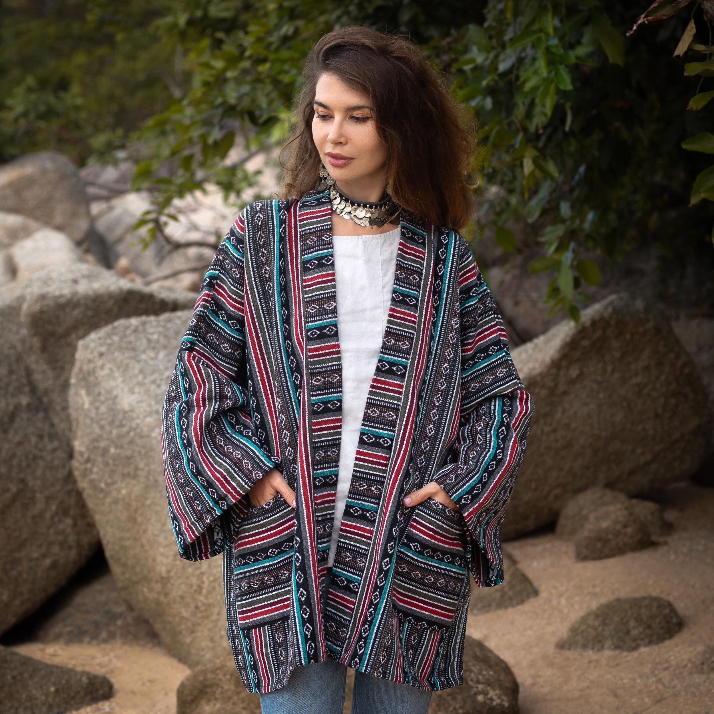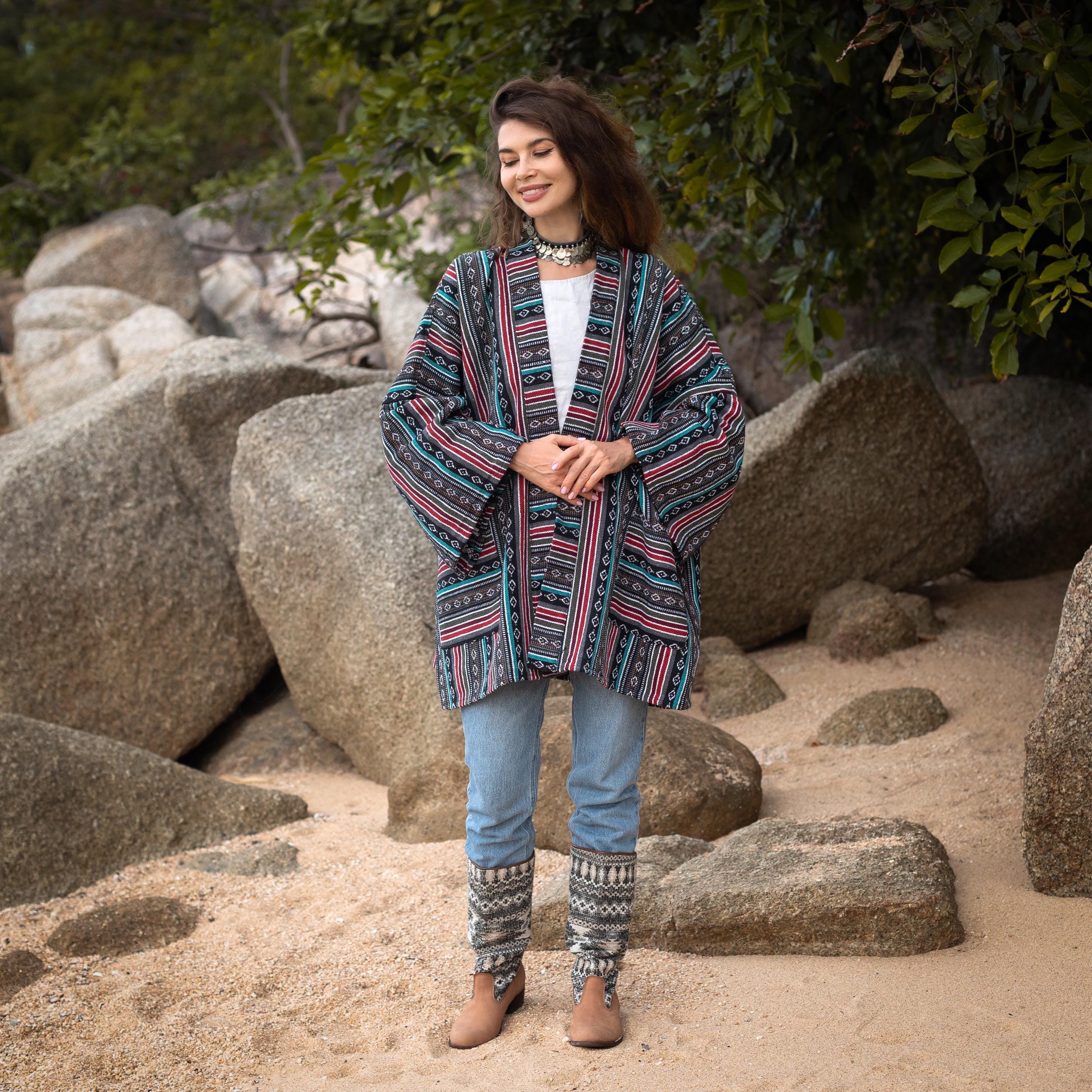 Add a cozy, artistic touch to your wardrobe with the Nomari Kimono Jacket—an exclusive, limited edition piece from ZinniaPearl that blends bohemian flair with everyday comfort.