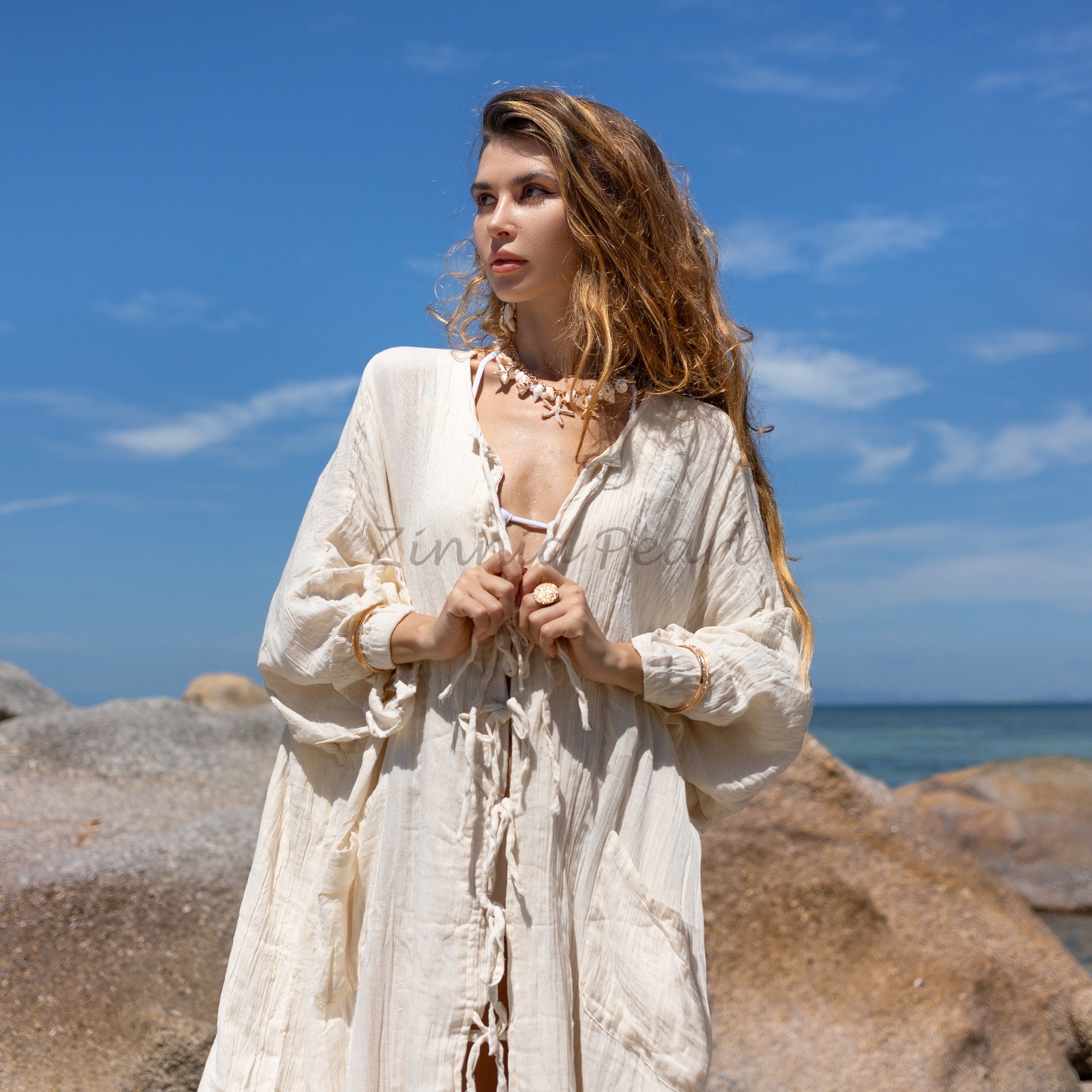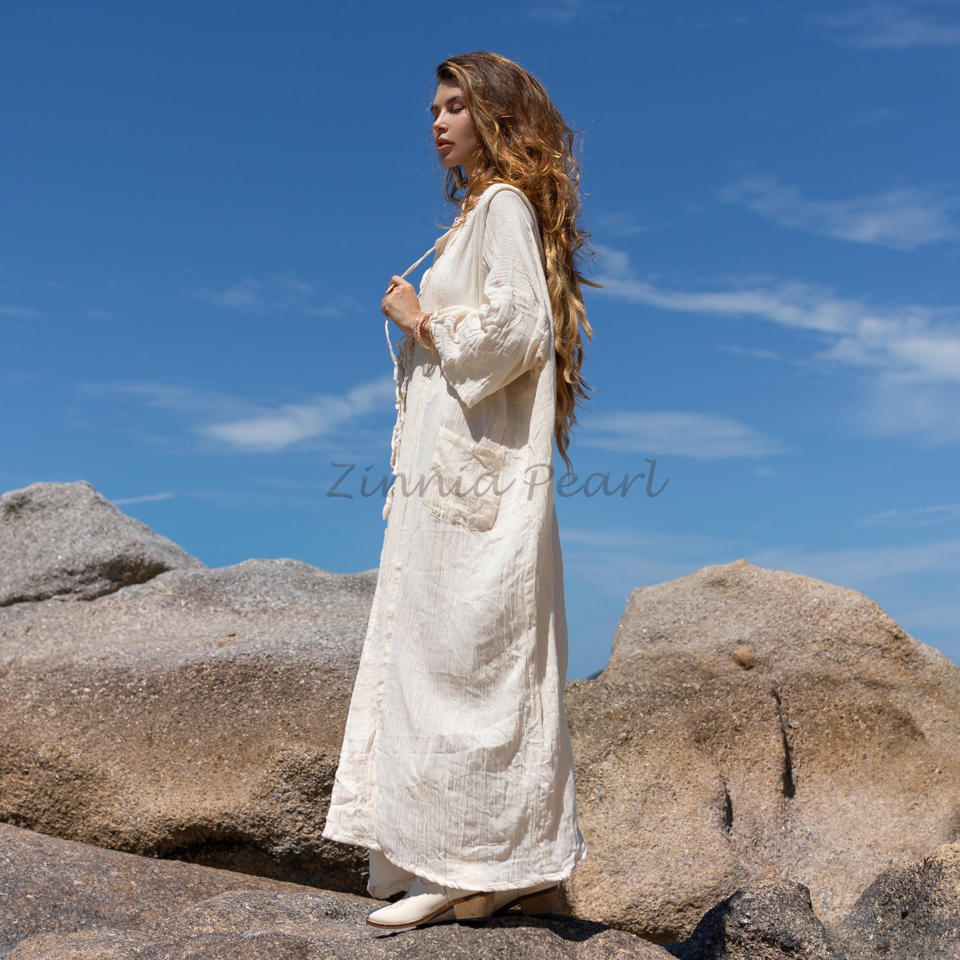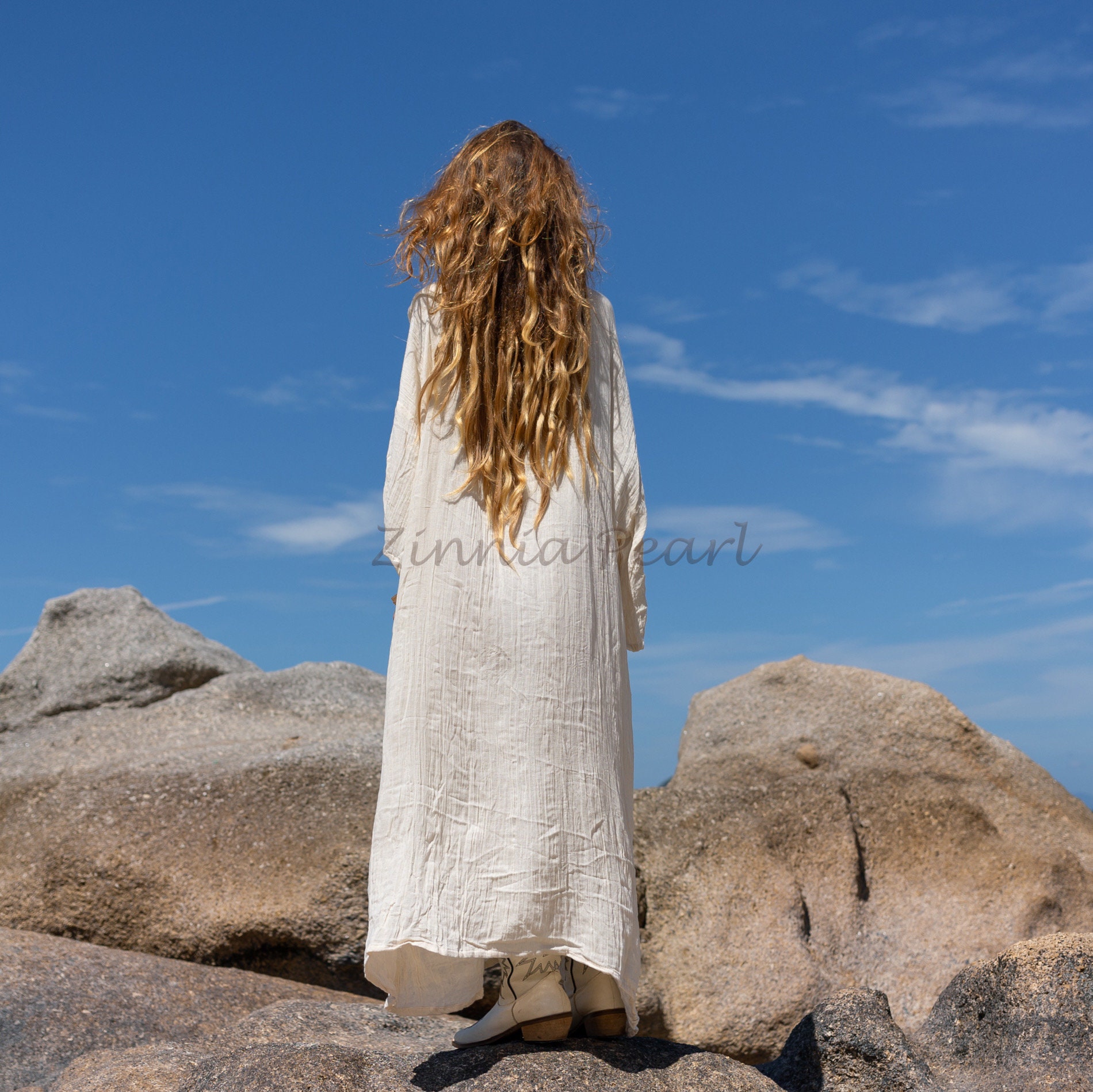 Plus Size Raw Cotton Kimono Duster: Boho Beach Coverup – Aimi
