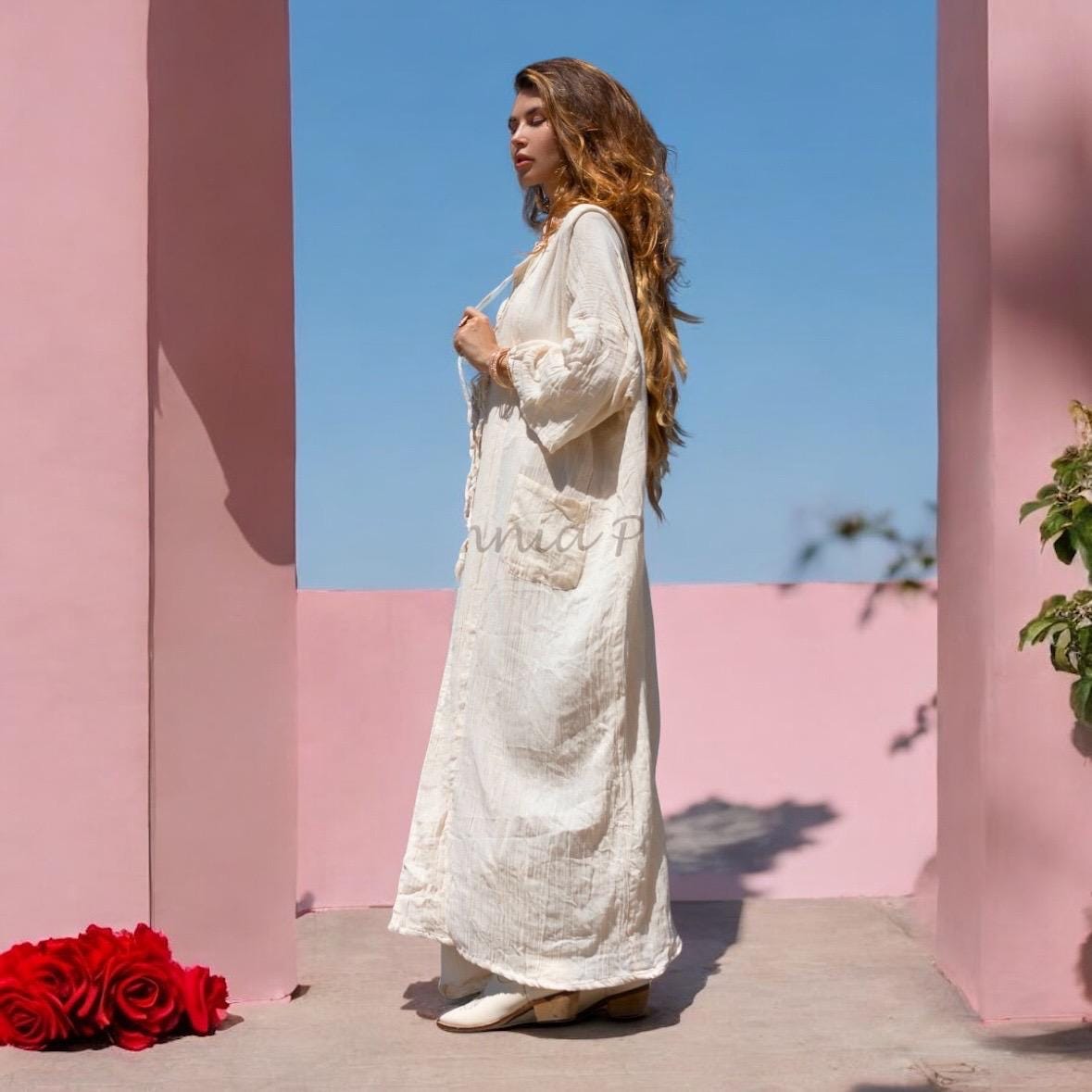 🌀 Discover a beautiful collection of raw cotton kimonos, boho dusters, beach coverups, hoodies & more! ✨🌟