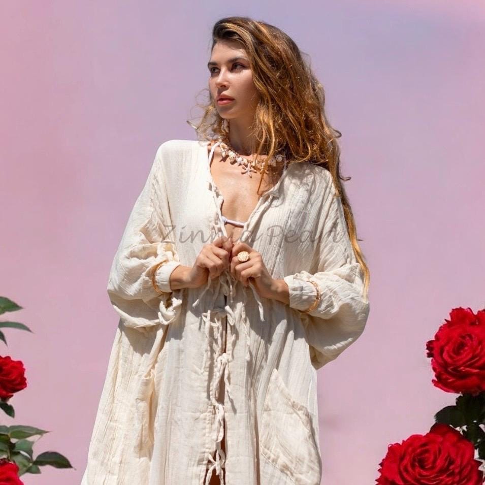 Embrace effortless elegance with the Aimee Kimono Duster, a timeless layering piece crafted from 100% raw cotton. Designed for comfort and style, this lightweight boho wrap is perfect for beach days, resort wear, festivals, and everyday layering. Its flowy silhouette, wide sleeves, and front ties closure make it a must-have for free-spirited fashion lovers. ✨