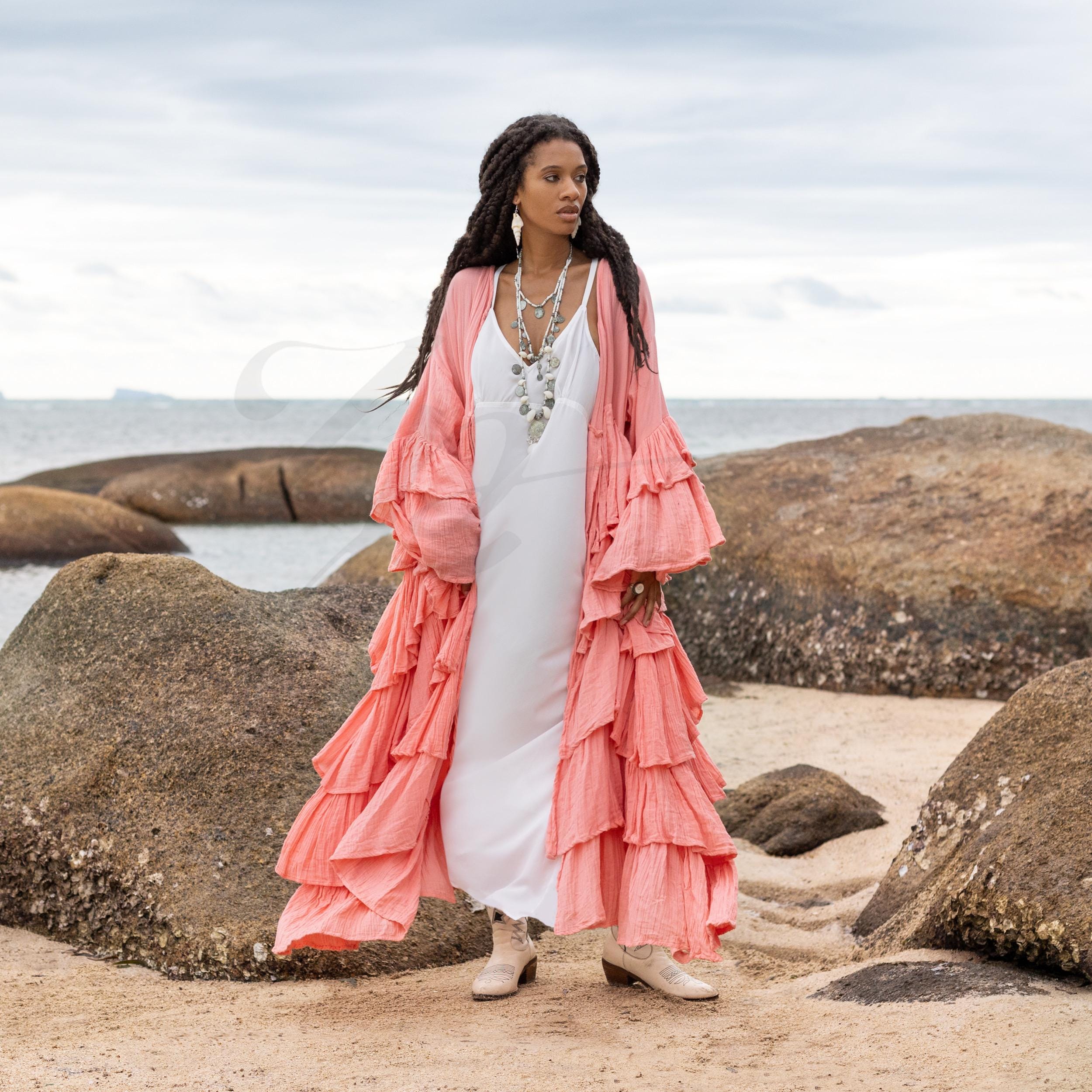 Plus Size Ruffled Raw Cotton Kimono: Boho Festival Duster – Bali