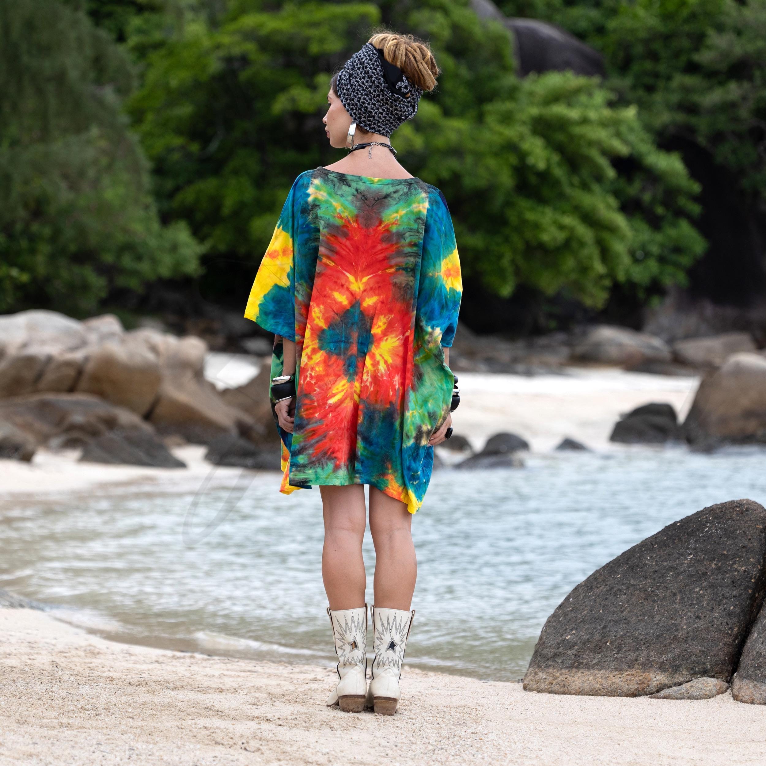 Plus Size Tie-Dye Cotton Caftan Tunic: Boho Festival Dress – Celestia