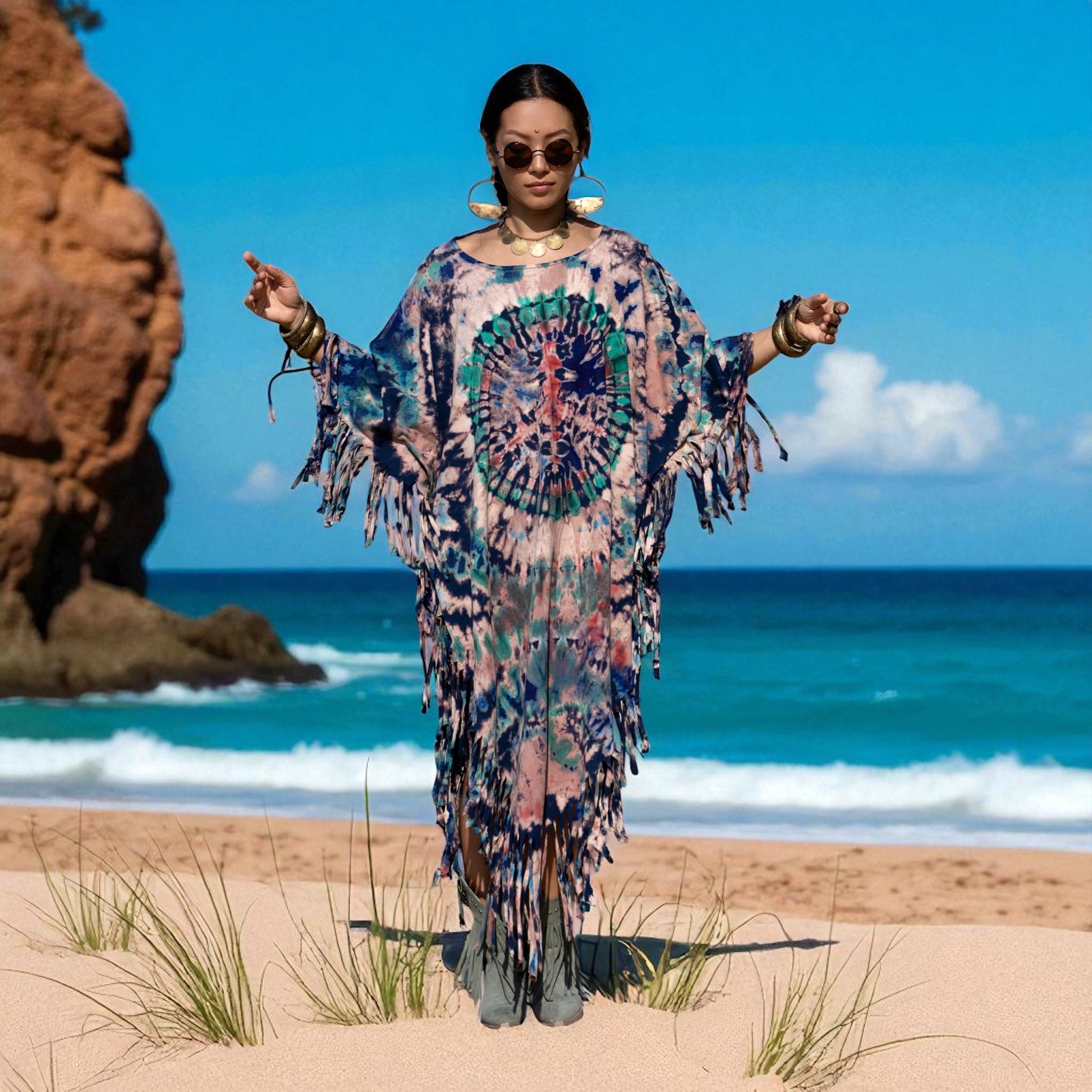 Plus Size Tie-Dye Fringe Tunic Dress: Boho Festival Kaftan – Arlo