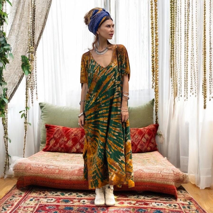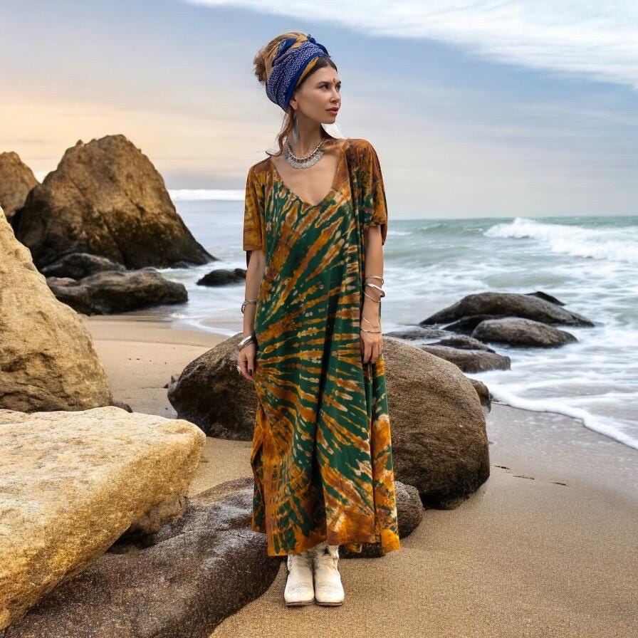 • Versatile Wear – Boho beach kaftan, plus size tie dye dress, travel robe, or bold lounge layer.