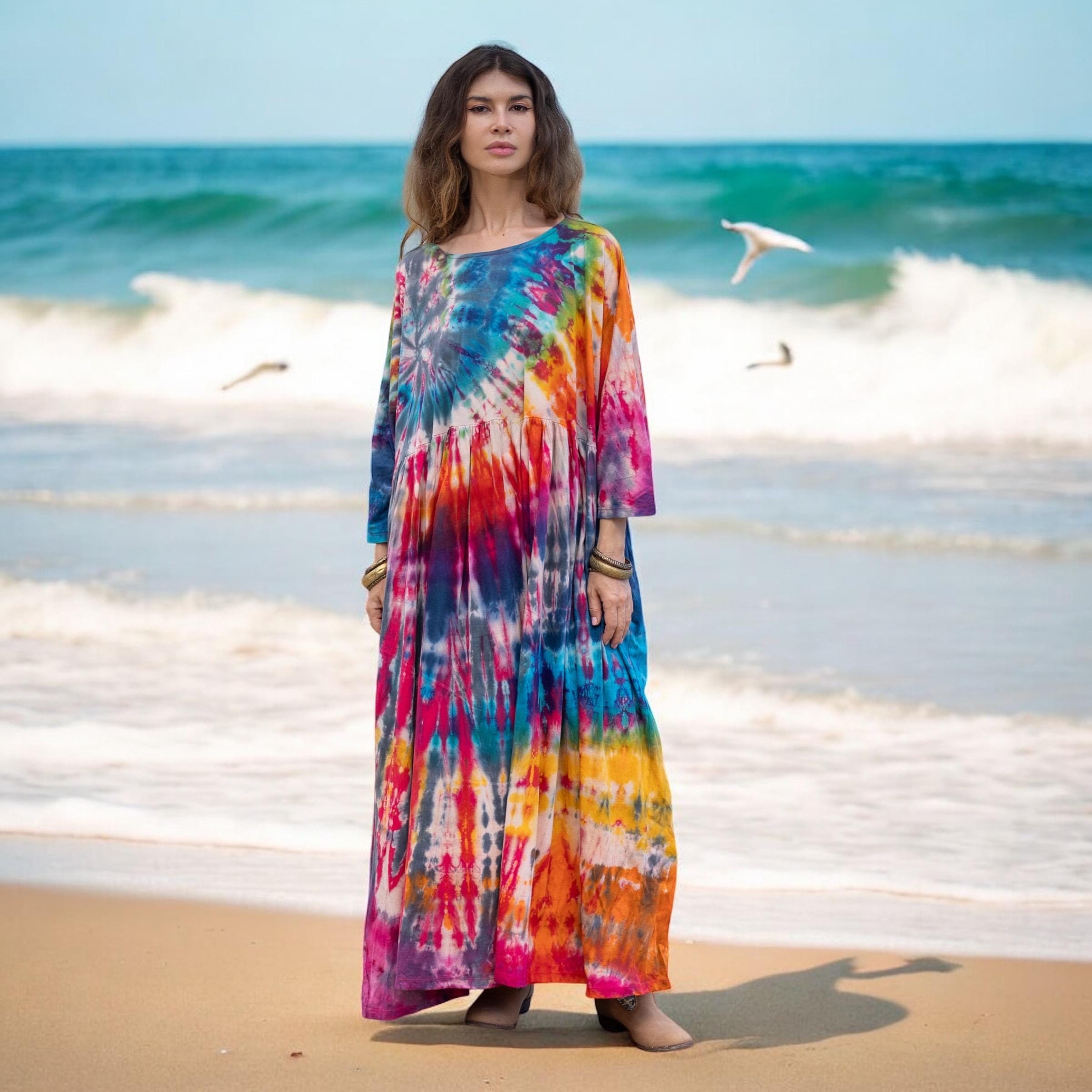 Plus Size Tie Dye Maxi Dress: Cotton Boho Caftan – Euphoria