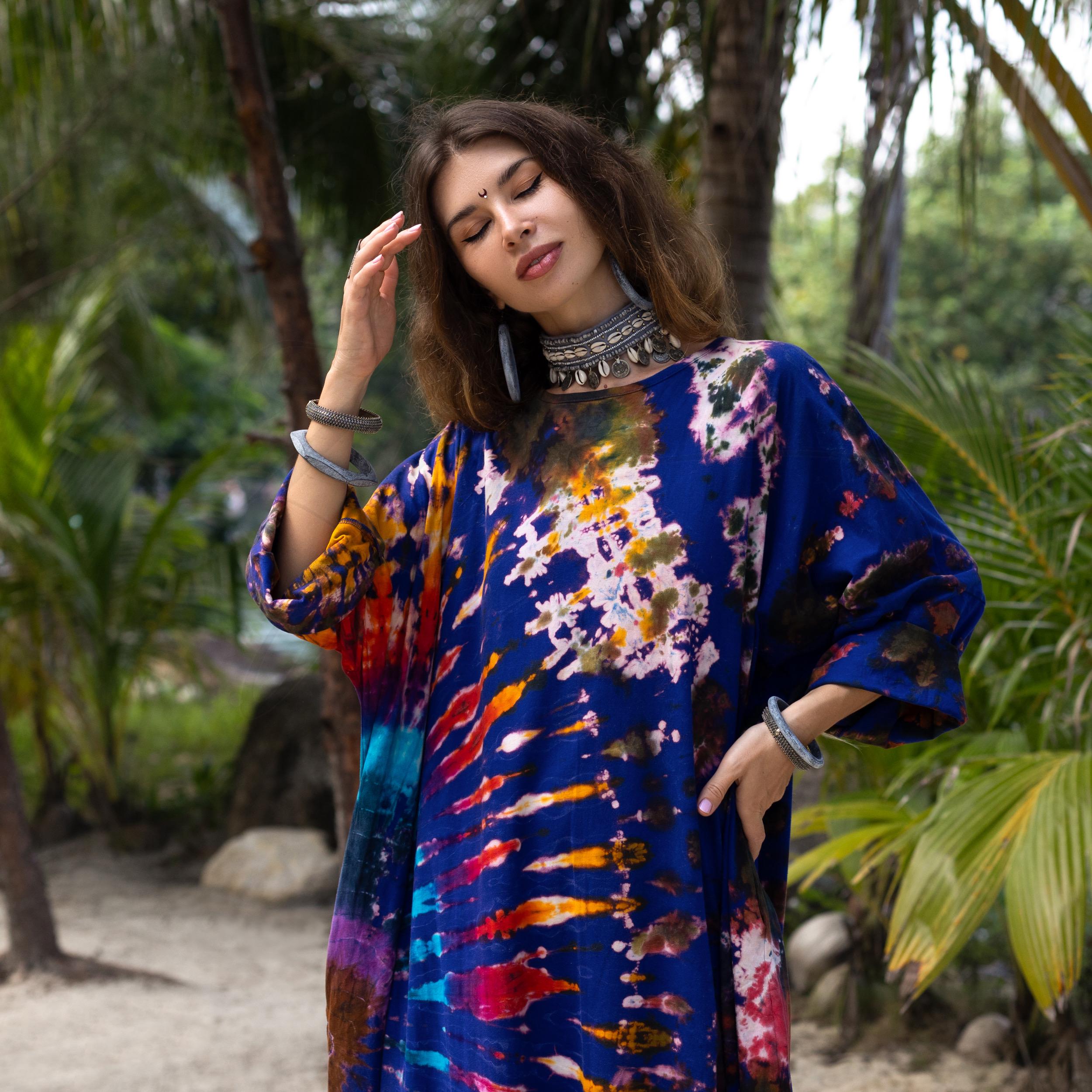 Plus Size Tie Dye Maxi Dress: Indigo Nebula Boho Caftan – Euphora