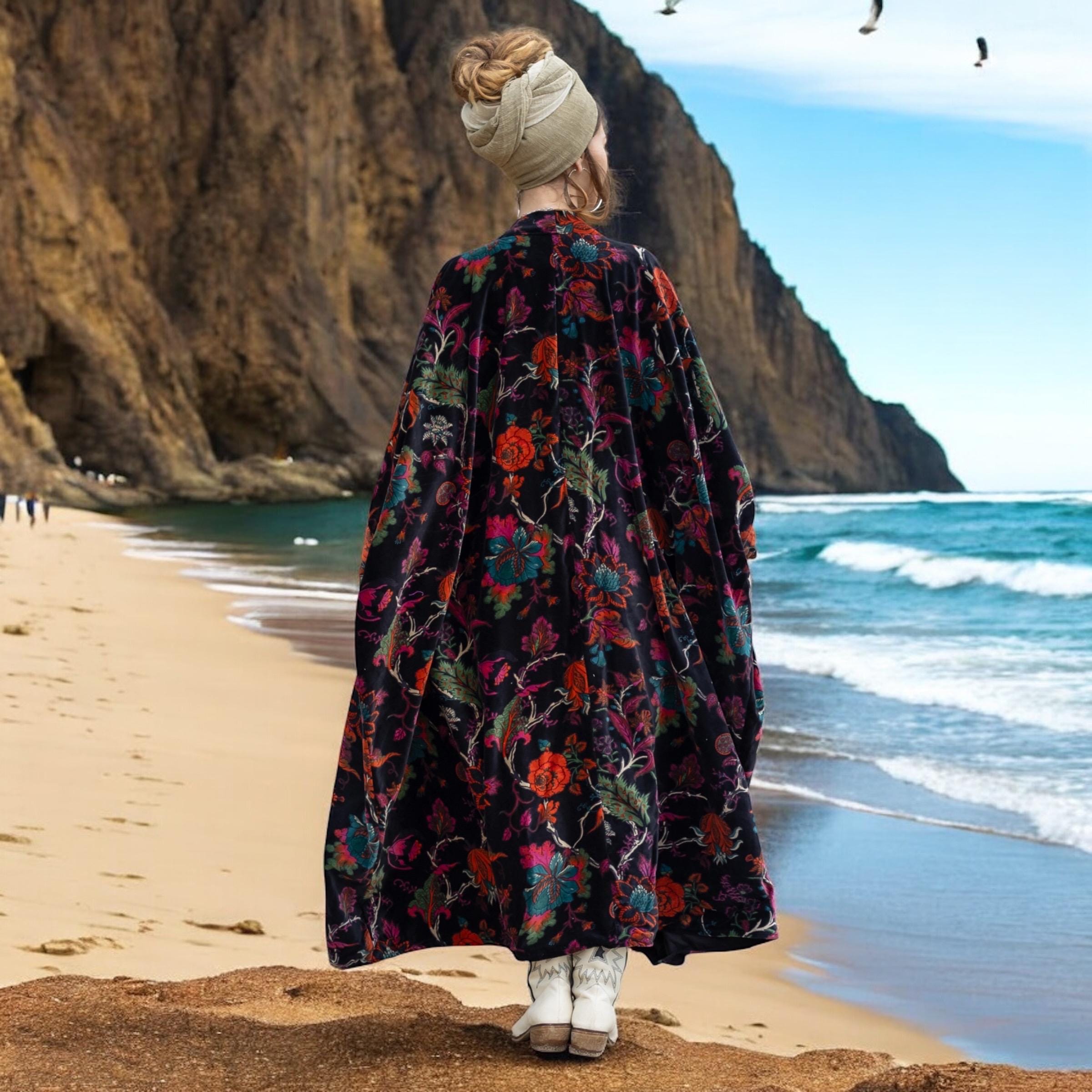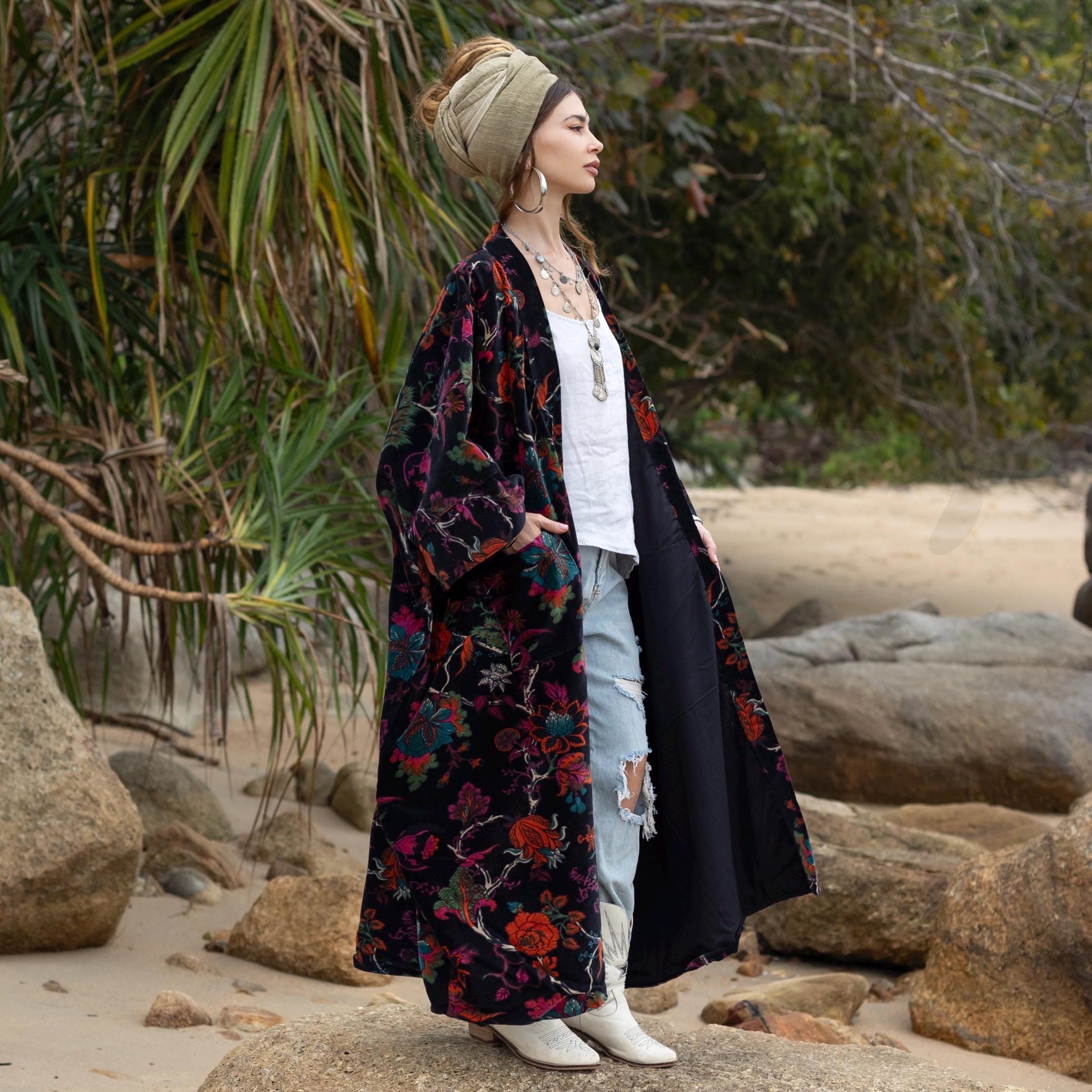 Plus Size Velvet Kimono Duster: Midnight Flora Boho Robe – Harper Jade