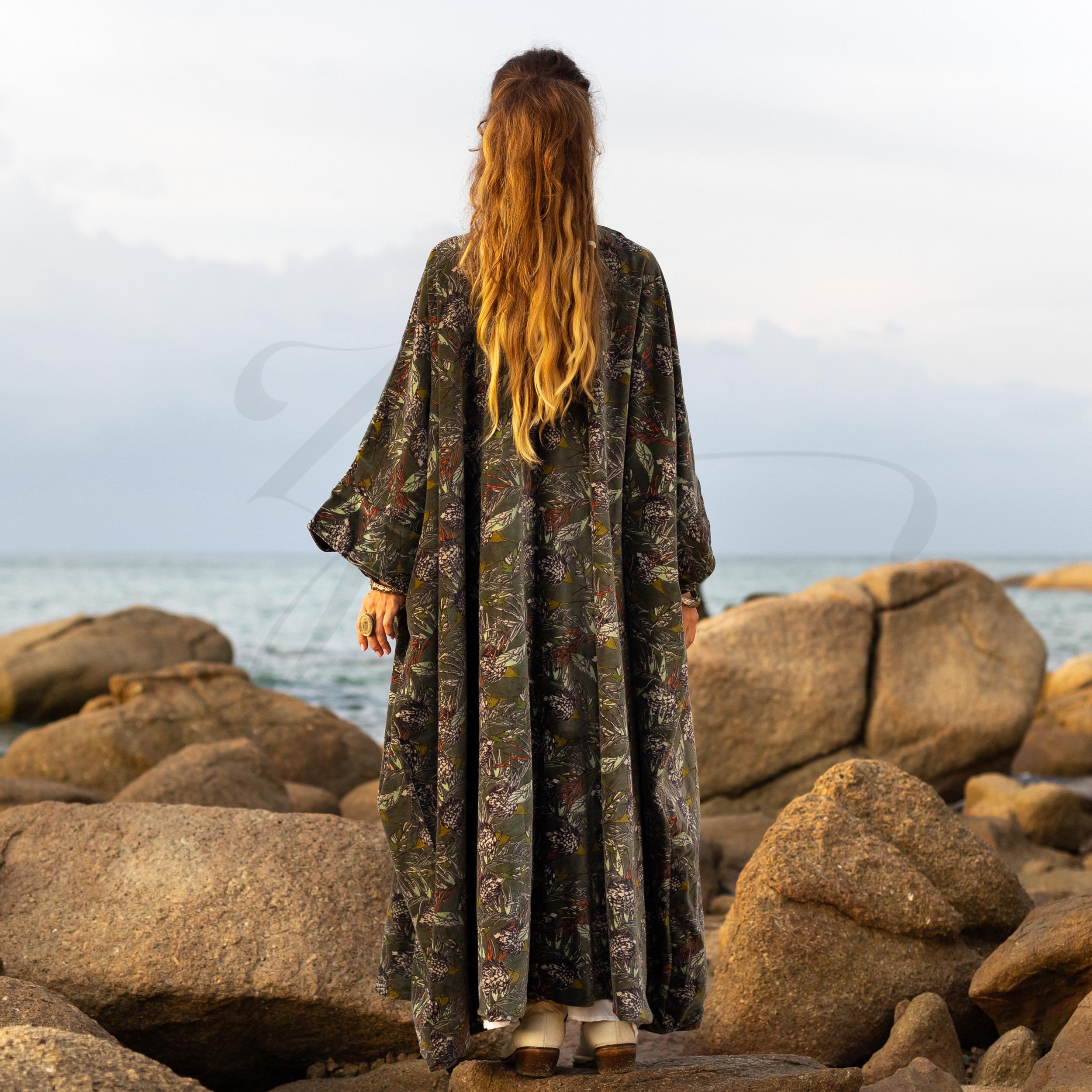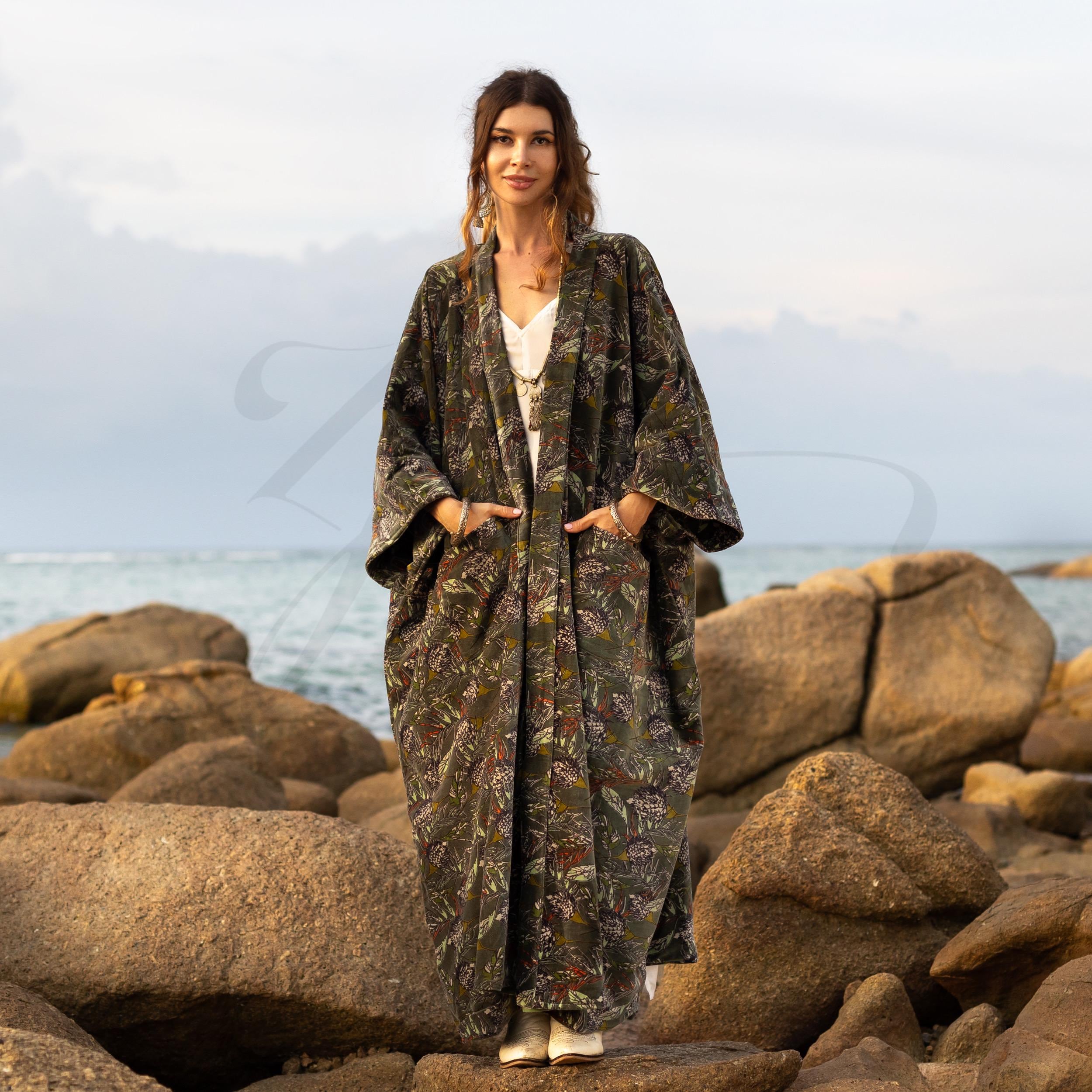 Moonlit Pine Velvet Kimono Duster – Luxurious Boho Elegance – Harper Jade by ZinniaPearl