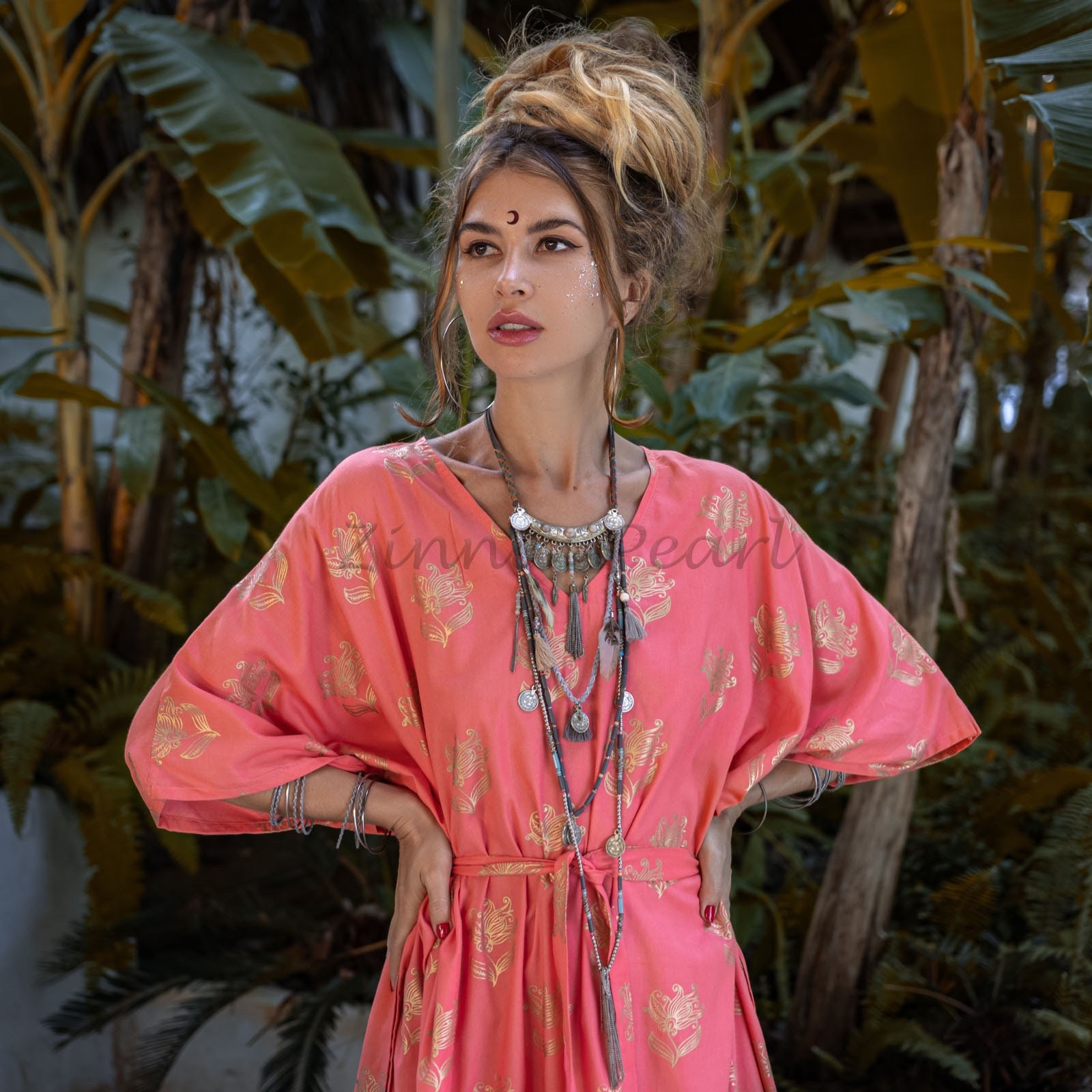 Details: lightweight and soft kaftan featured in a maxi silhouette with