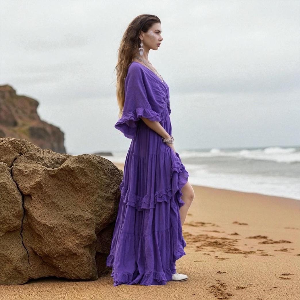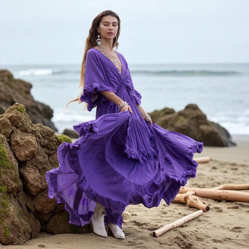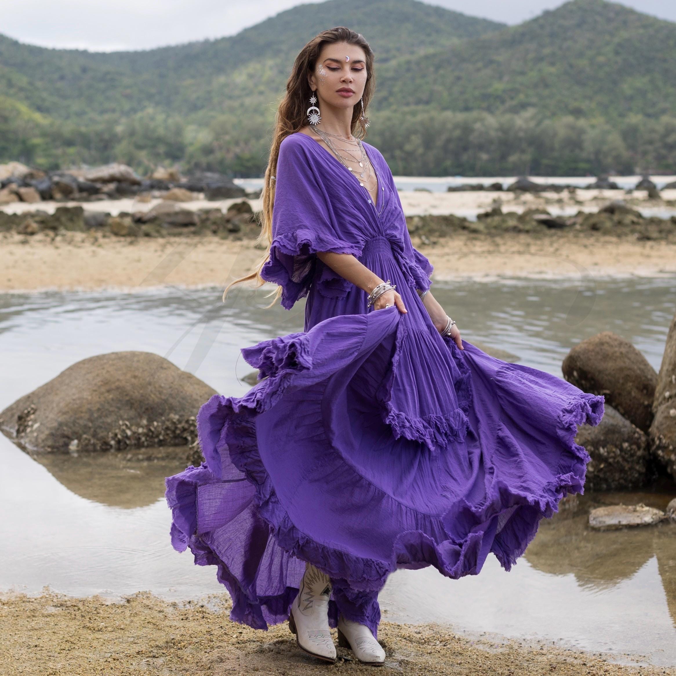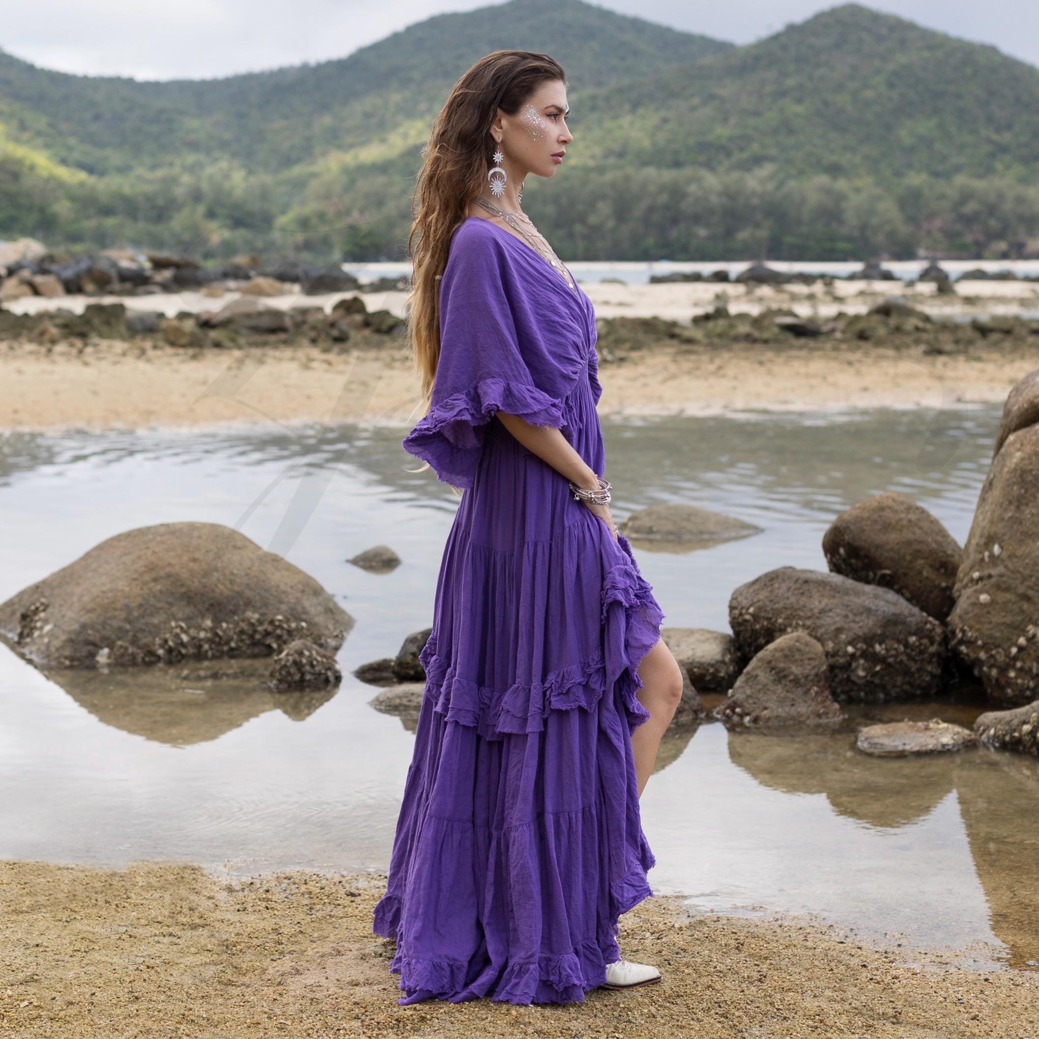 Beata – Radiant Amethyst Boho Wedding Dress | Plus Size Maternity Gown by ZinniaPearl