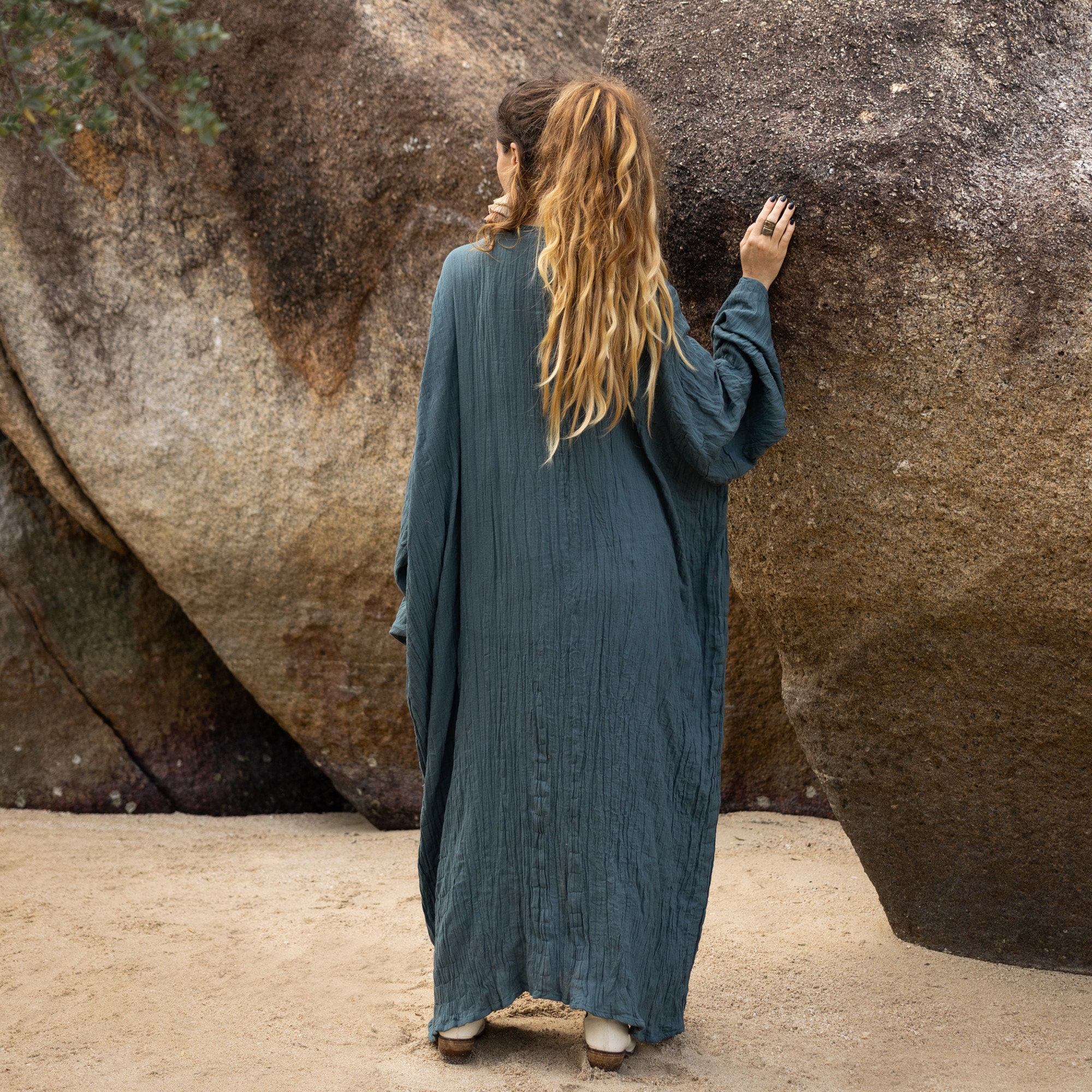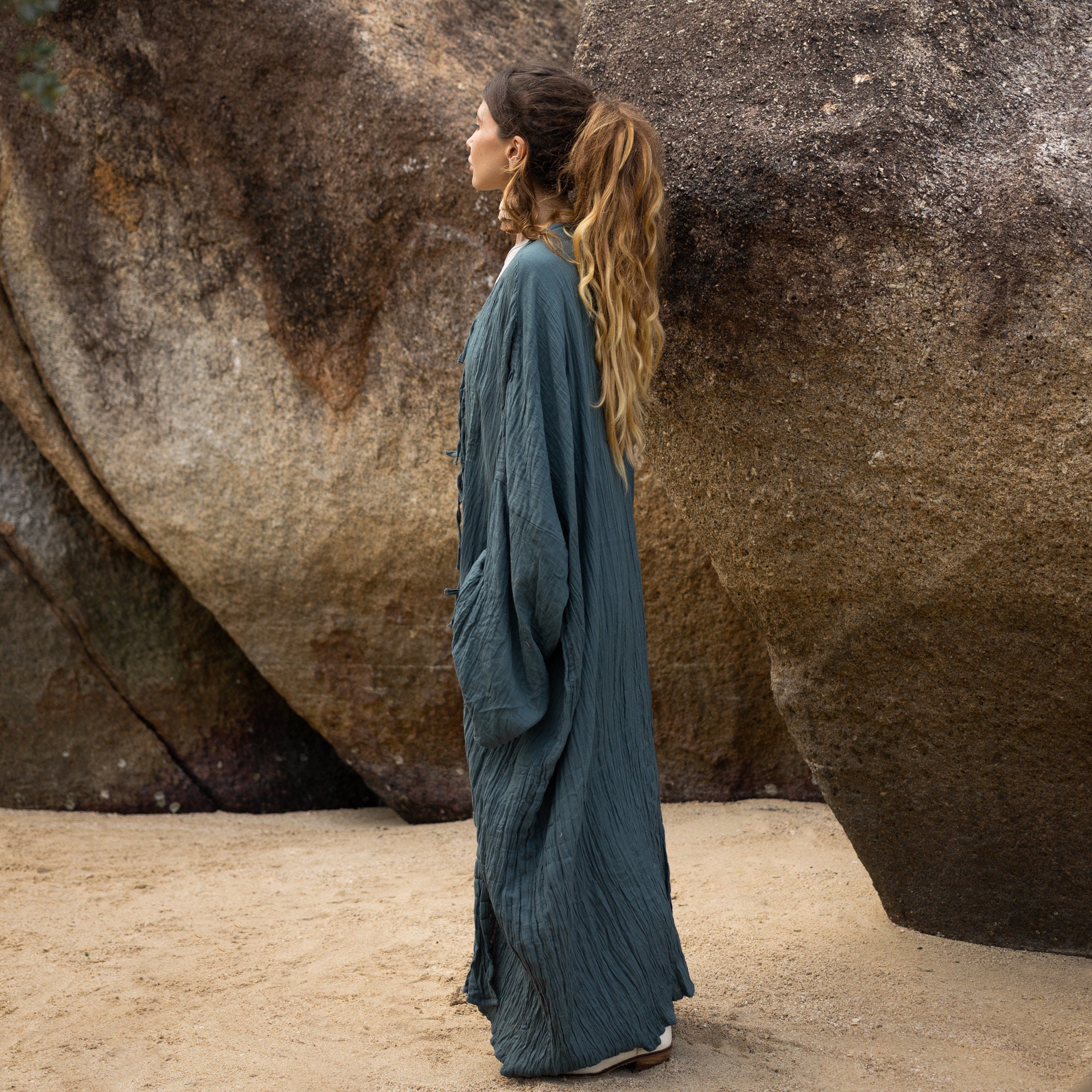 Raw Cotton Kimono Duster: Boho Beach Coverup with Ties, Plus Size – Aimi