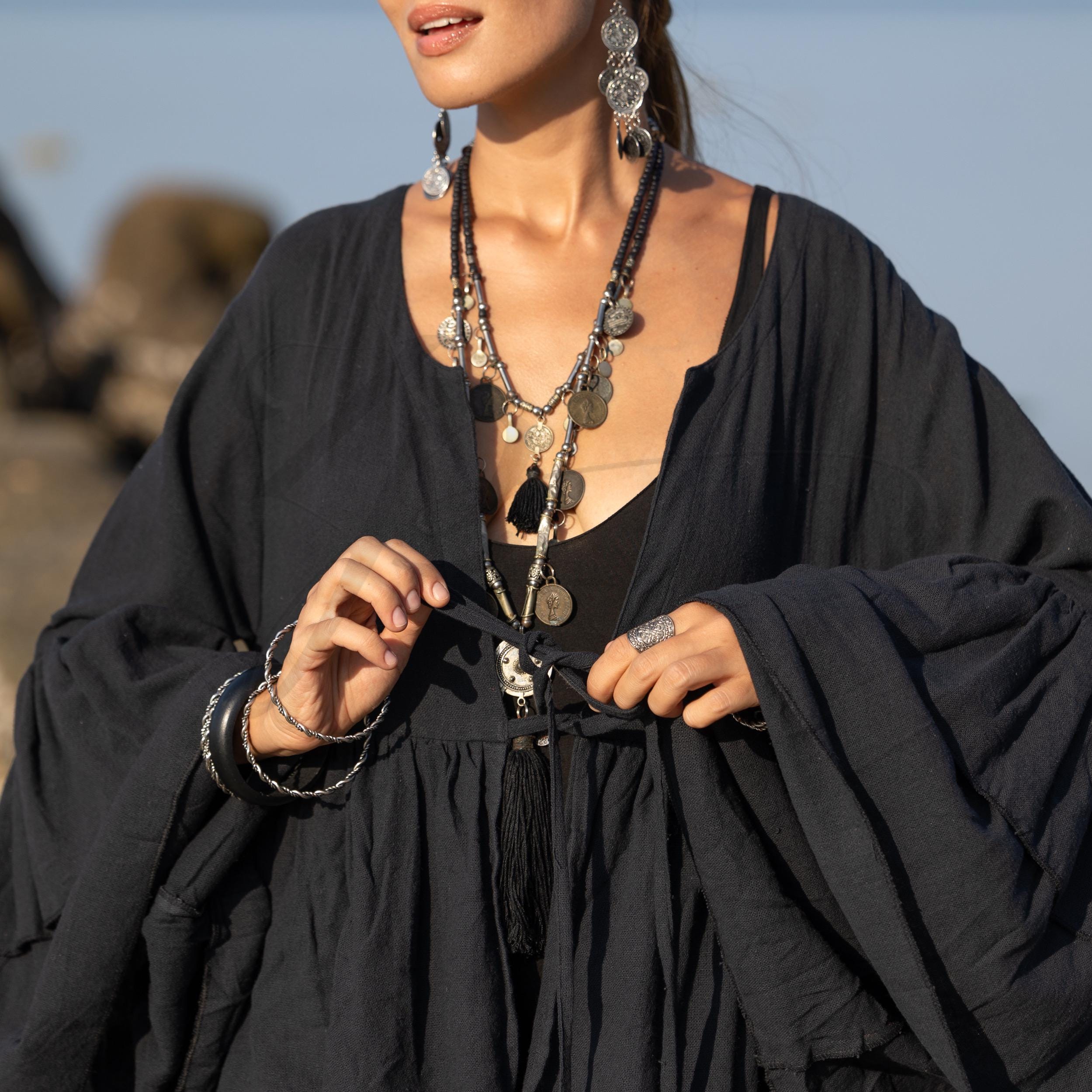 Wrap yourself in timeless boho romance with the Raven Black Ruffled Kimono Duster — a soulful statement piece crafted from hemp cotton. With its soft yet slightly heavier drape, this artisan-made duster offers both structure and flow, perfect for layered styling across seasons. Designed to celebrate curves, it’s a versatile heirloom for free-spirited living.