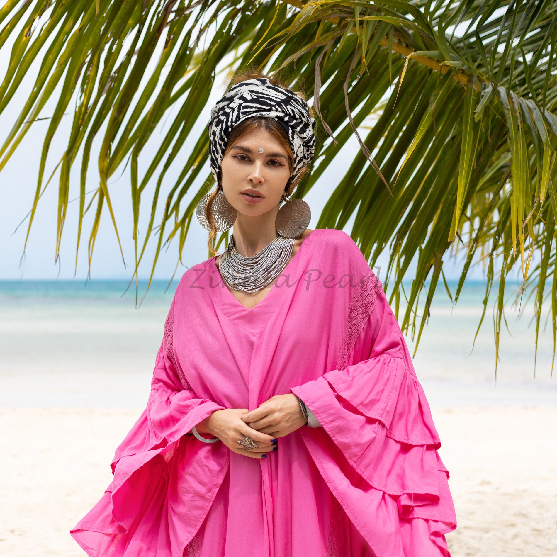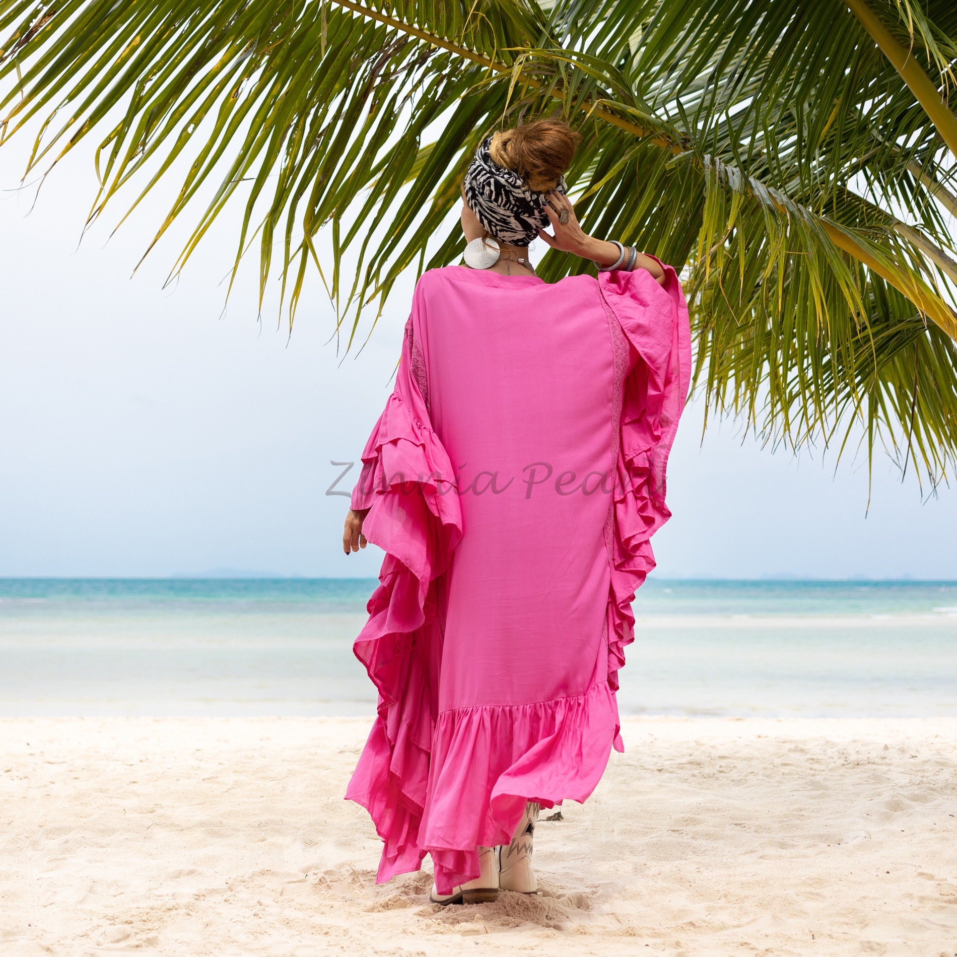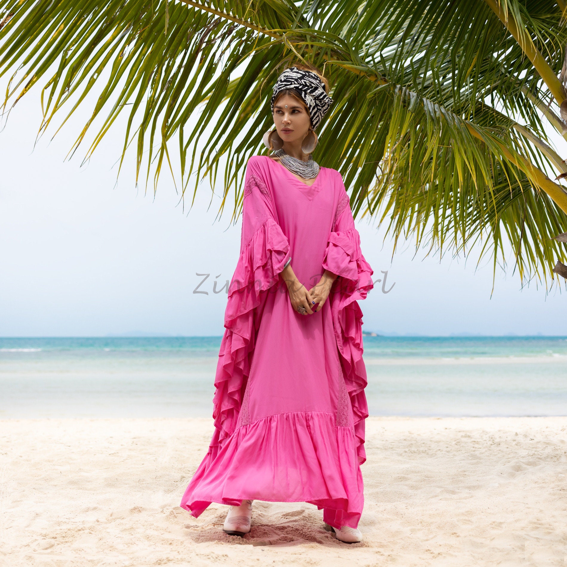 Ruffled Viscose Kaftan Dress: Boho Beach Abaya Maxi Dress – Wild Heart
