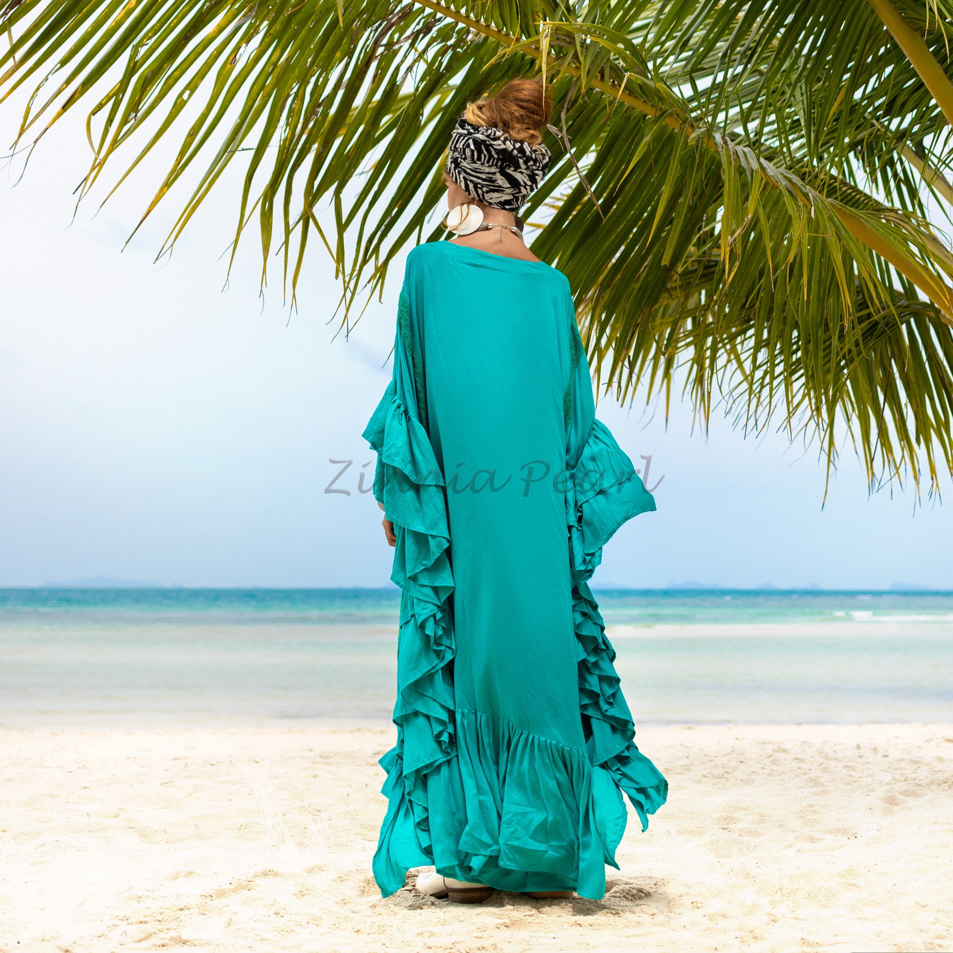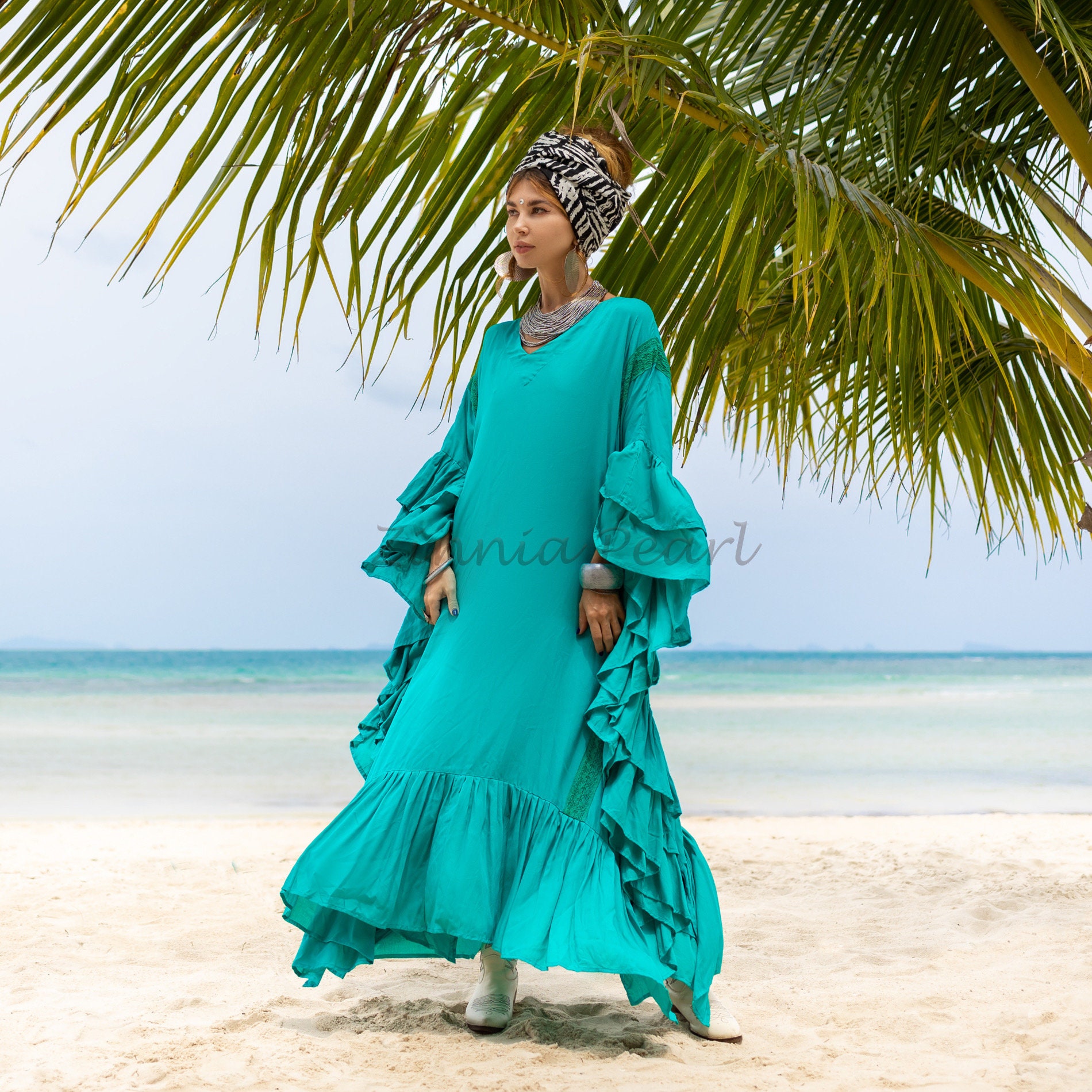 Ruffled Viscose Kaftan Dress: Boho Beach Abaya Maxi Dress – Wild Heart
