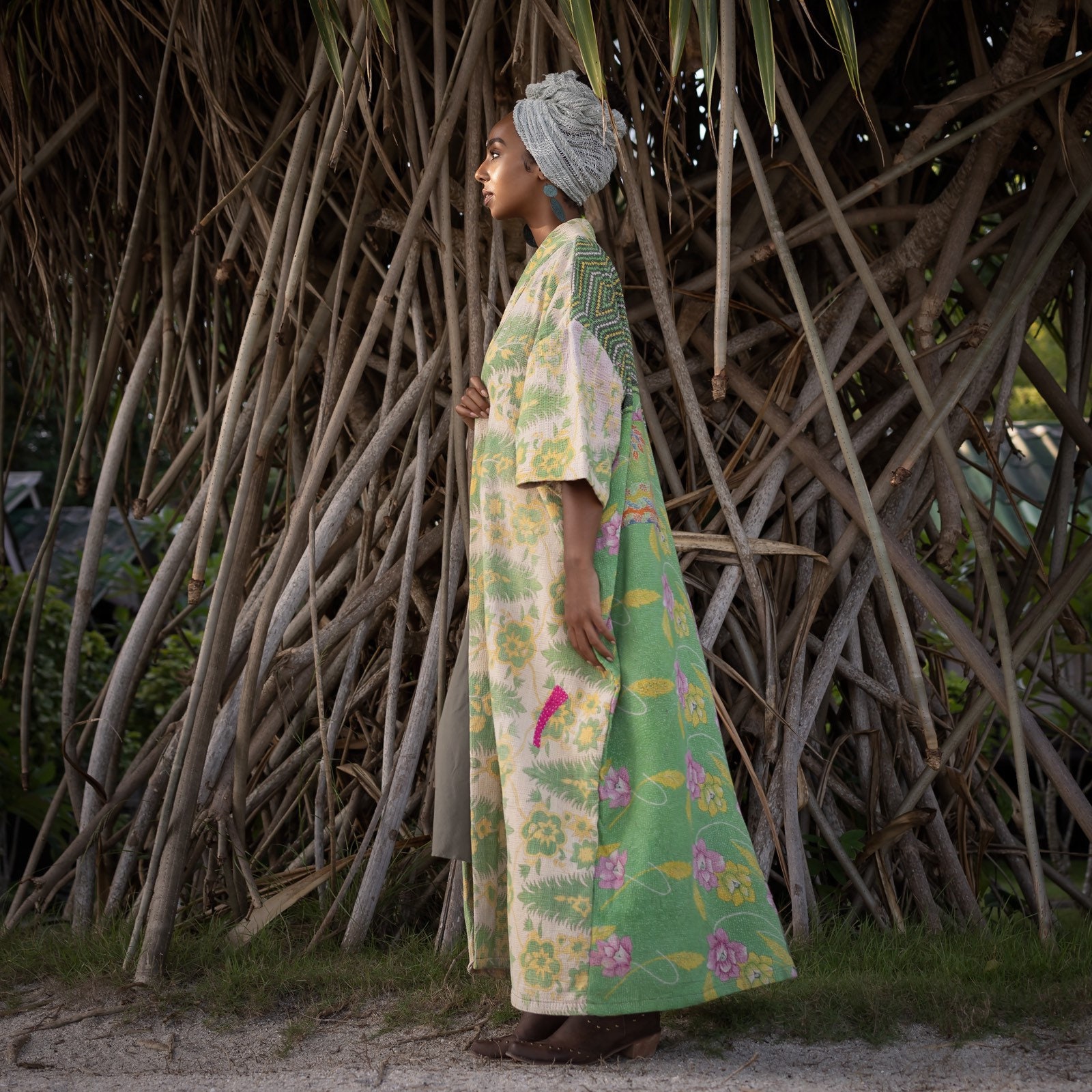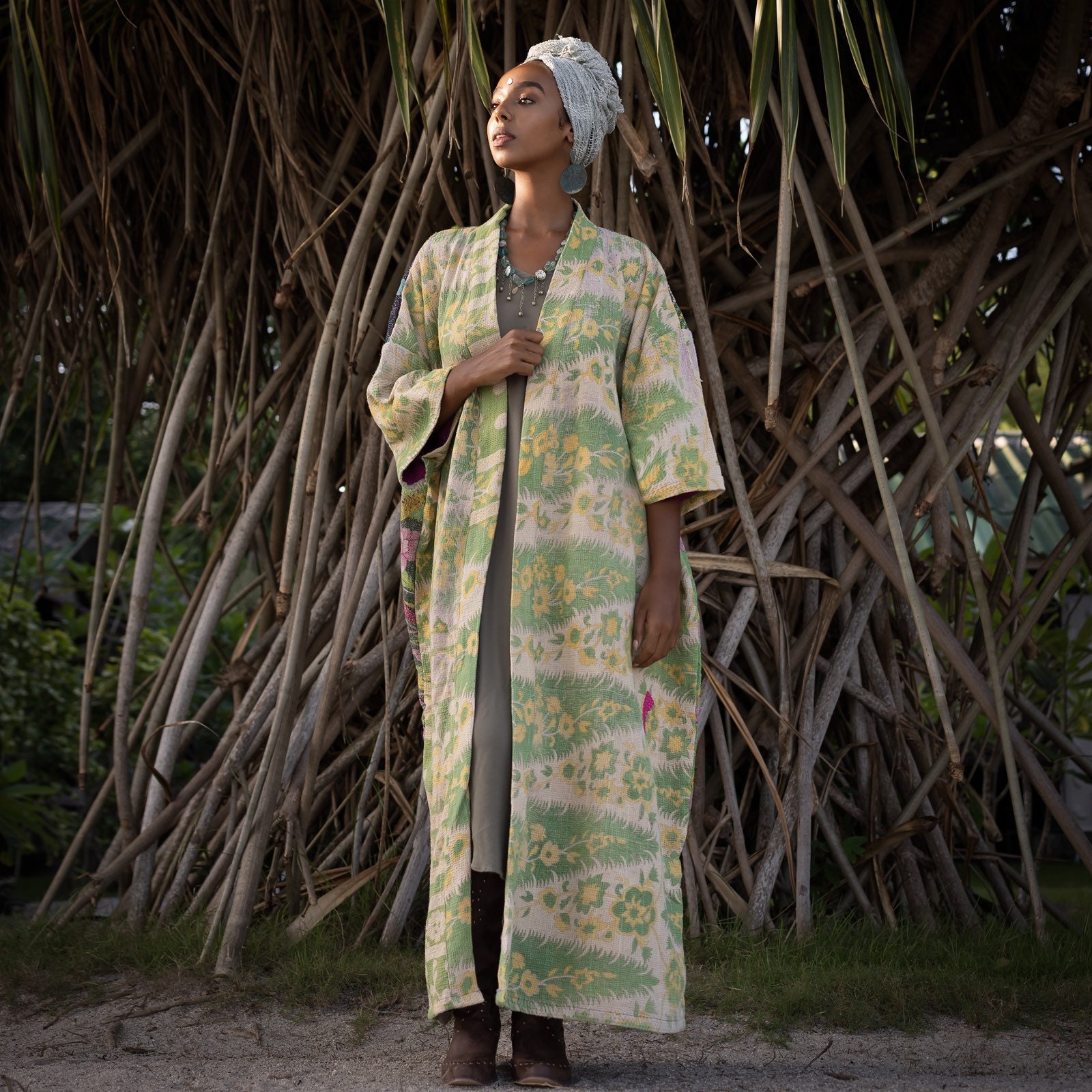 Sakura Reversible Vintage Quilted Duster Kimono Coat Jacket Handmade Boho Holidays Vacation Festival