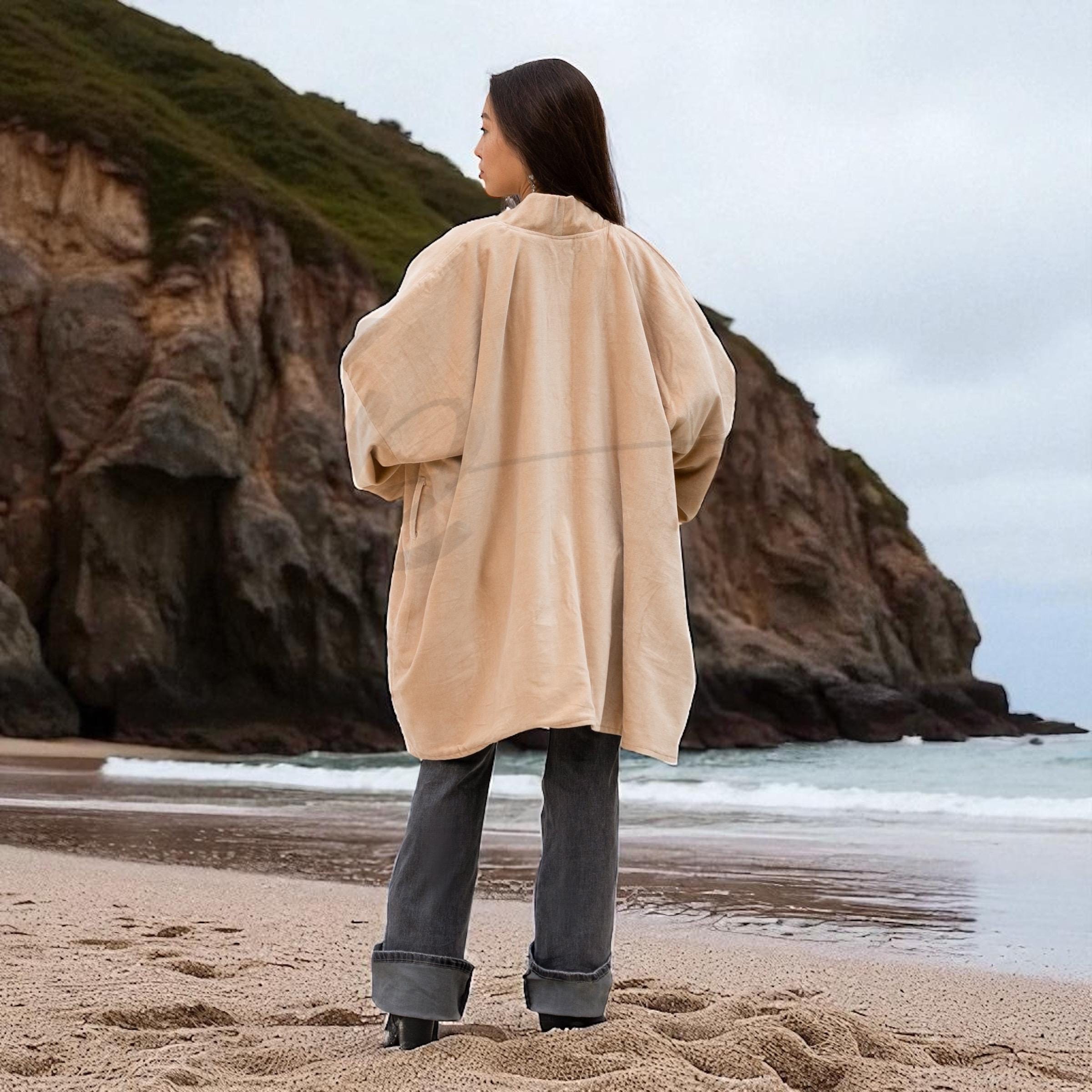 • Oversized Boho Silhouette – Open front, wide sleeves, detachable belt, and roomy fit.