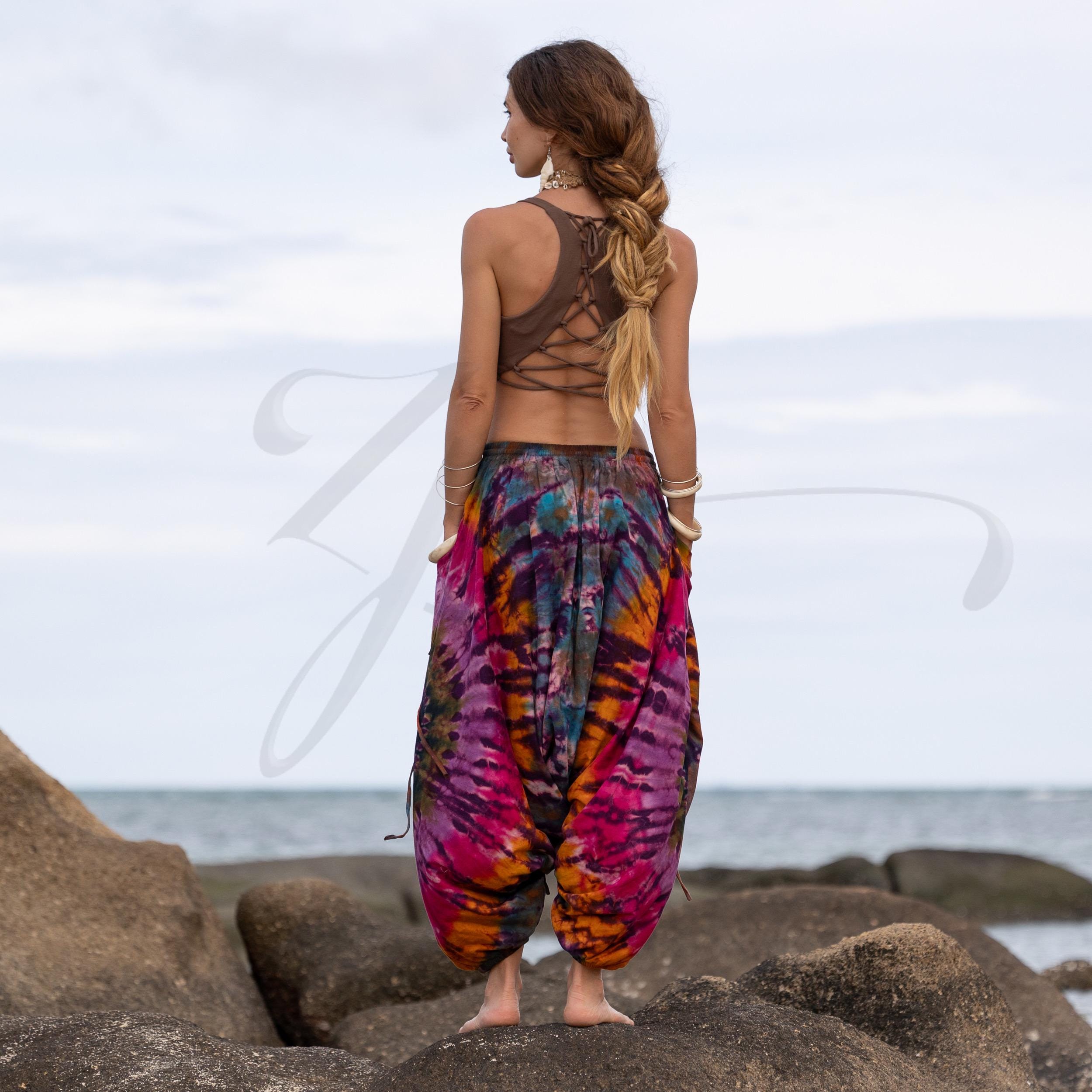 Tie Dye Harem Pants: Sunset Bloom Cotton Boho Festival Trousers – Spiritu