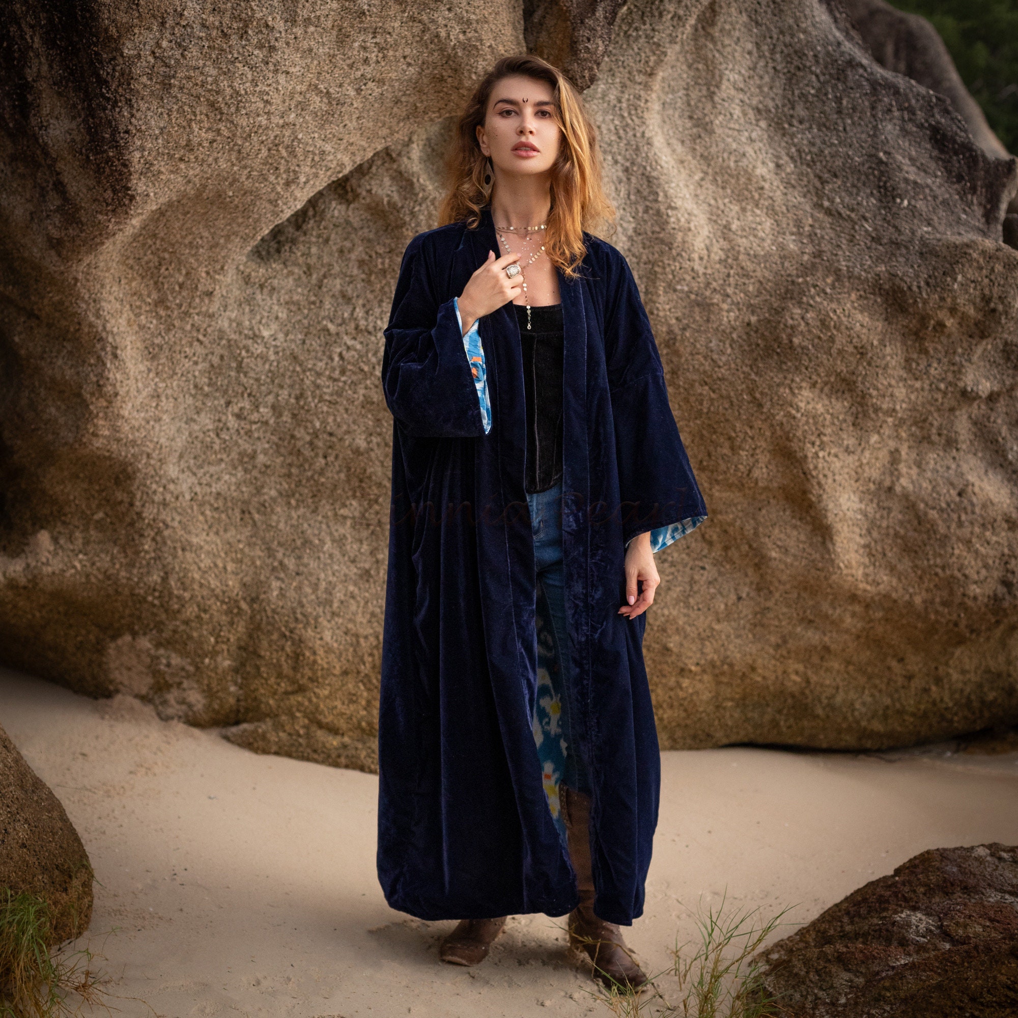 * Versatile Styling: Perfect as a long velvet coat, boho duster, or chic kimono robe.