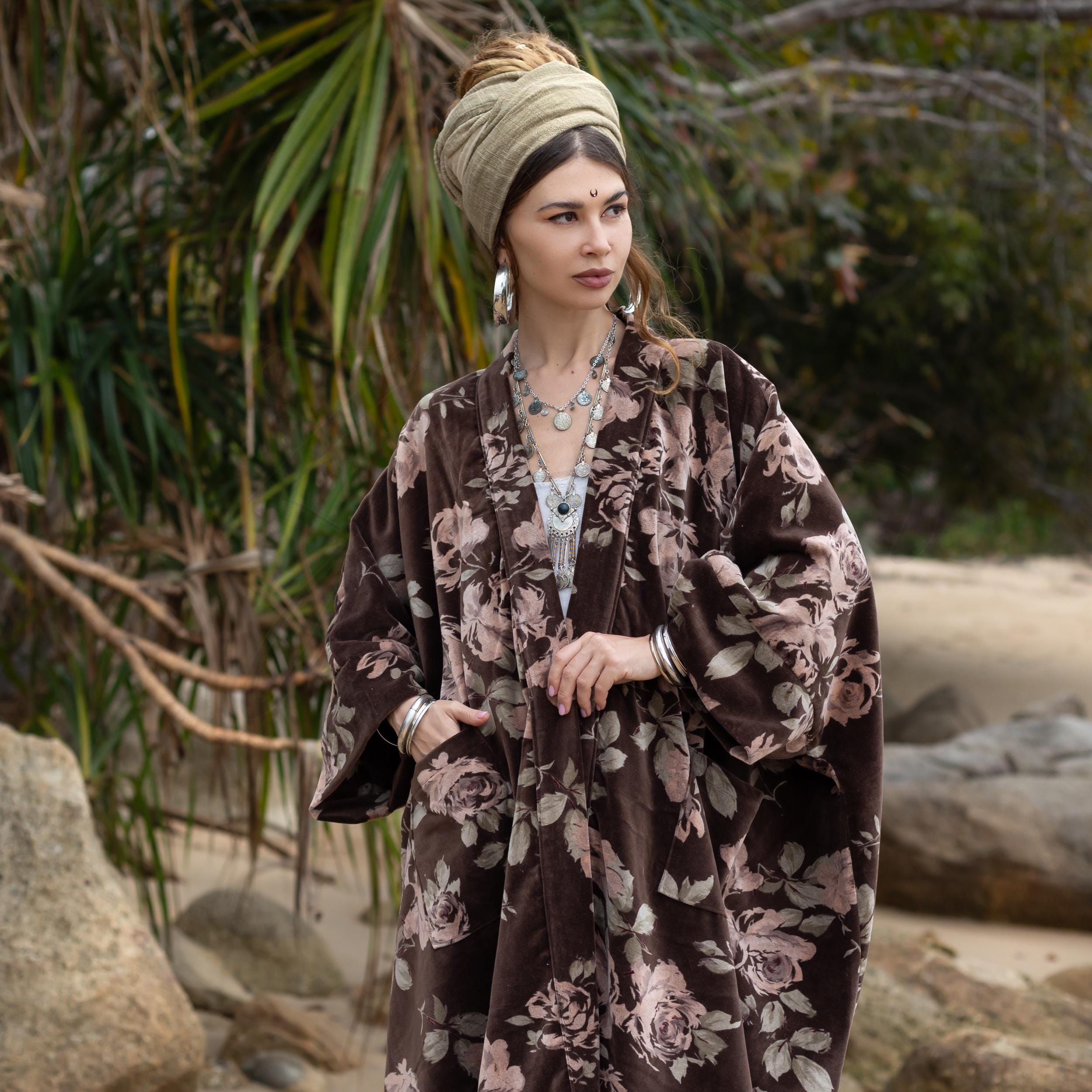 Antique Rose Velvet Kimono Robe – Harper Jade Boho Duster – ZinniaPearl