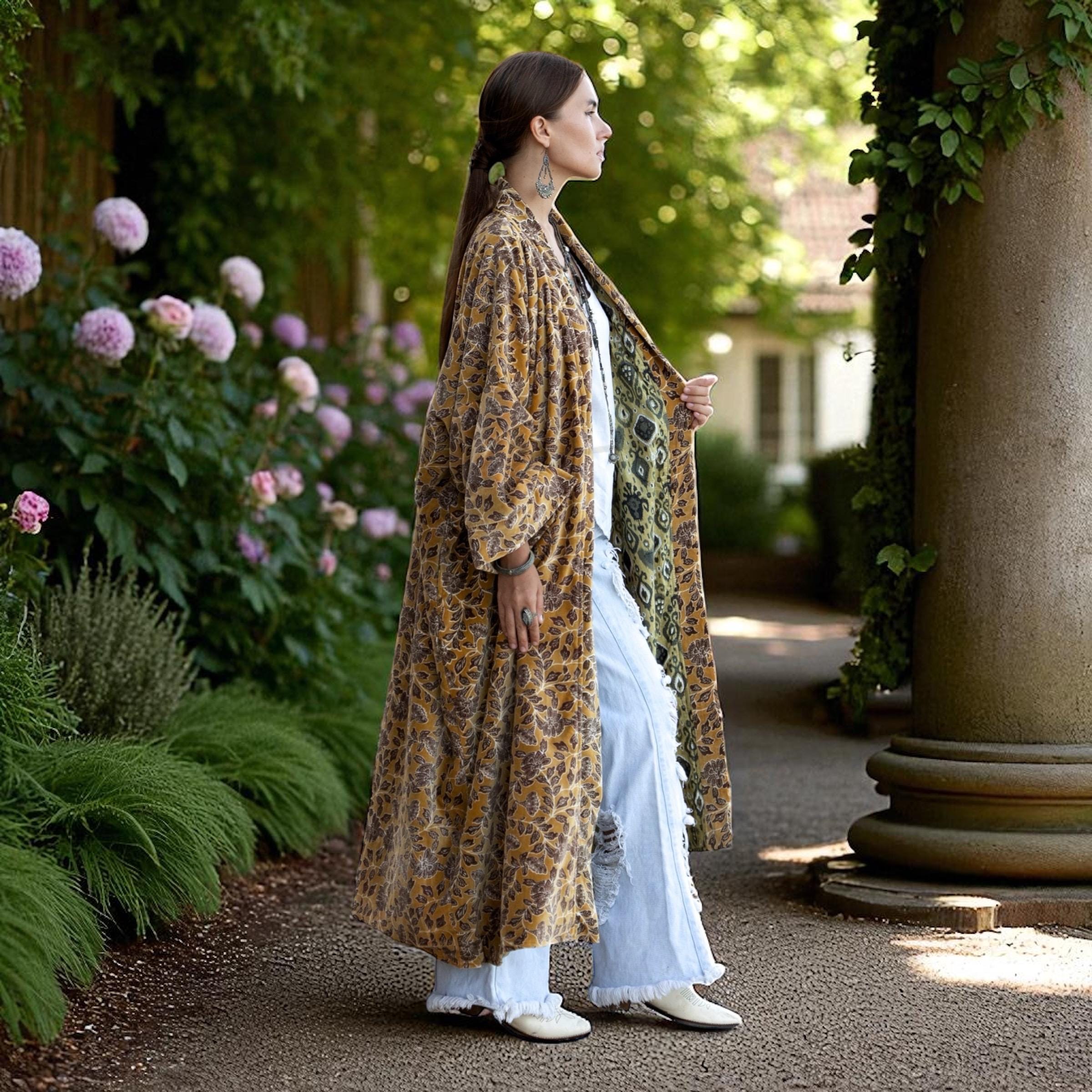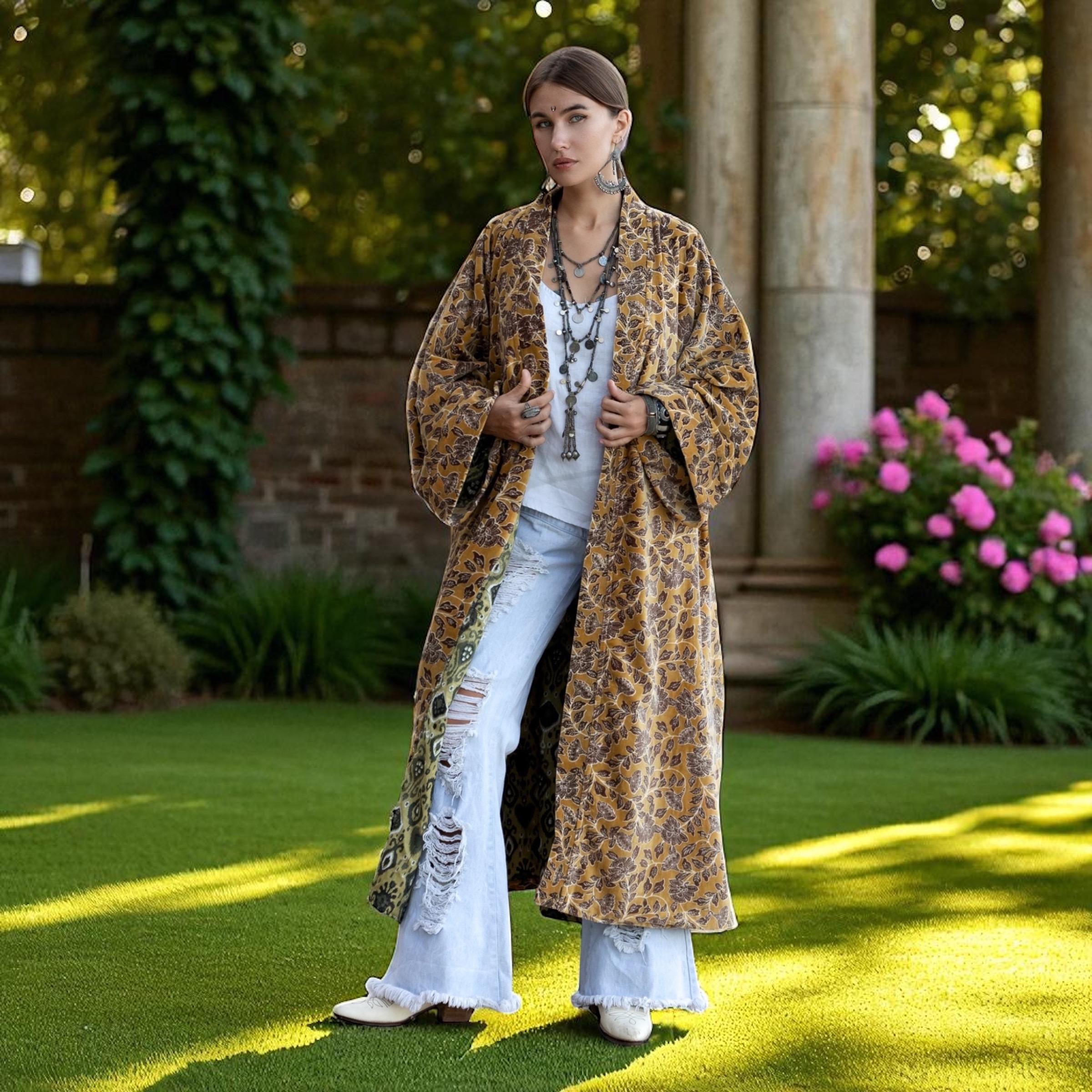 Velvet Kimono Robe: Desert Canopy Floral, Plus Size Boho Duster – Mai