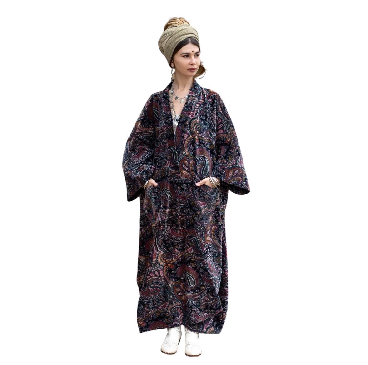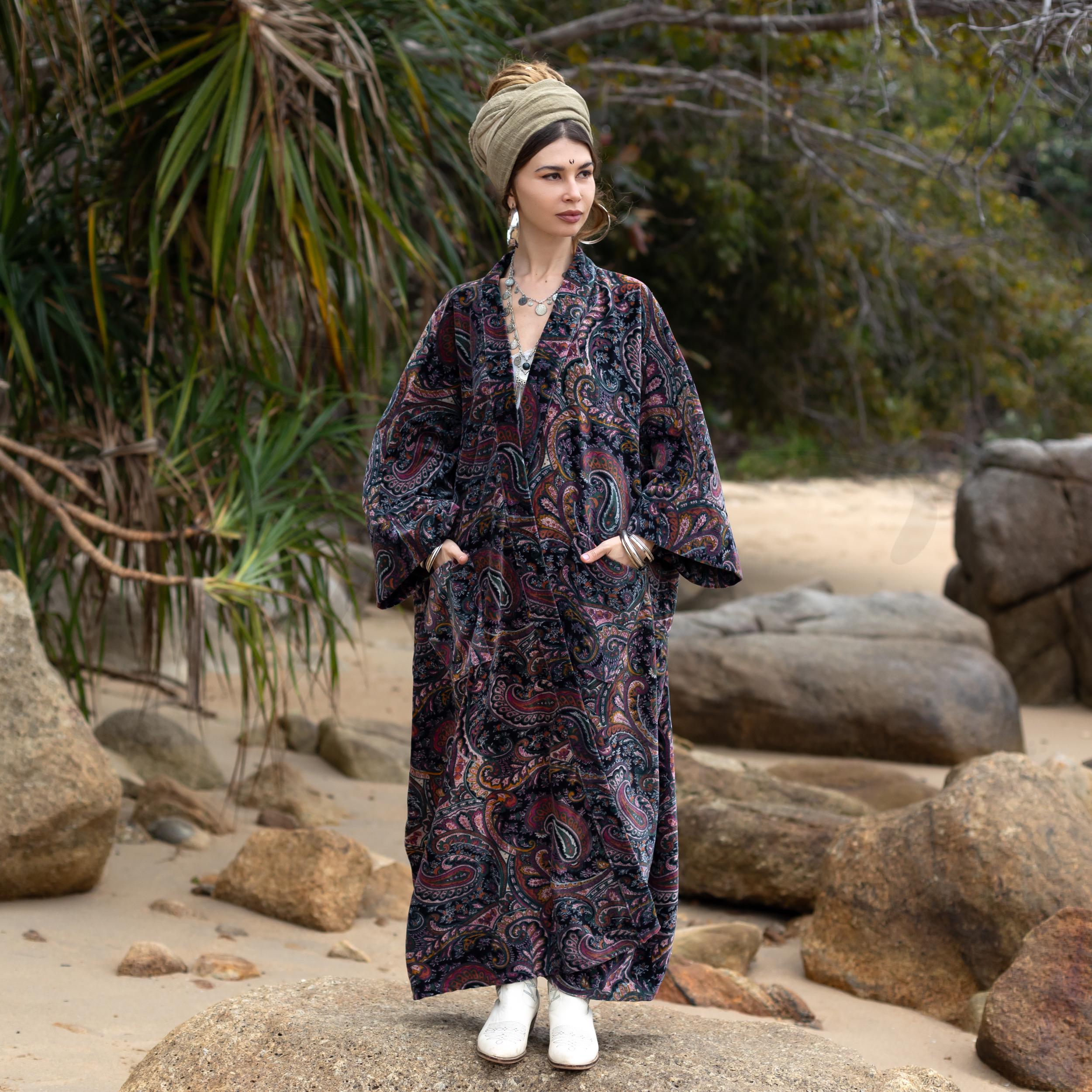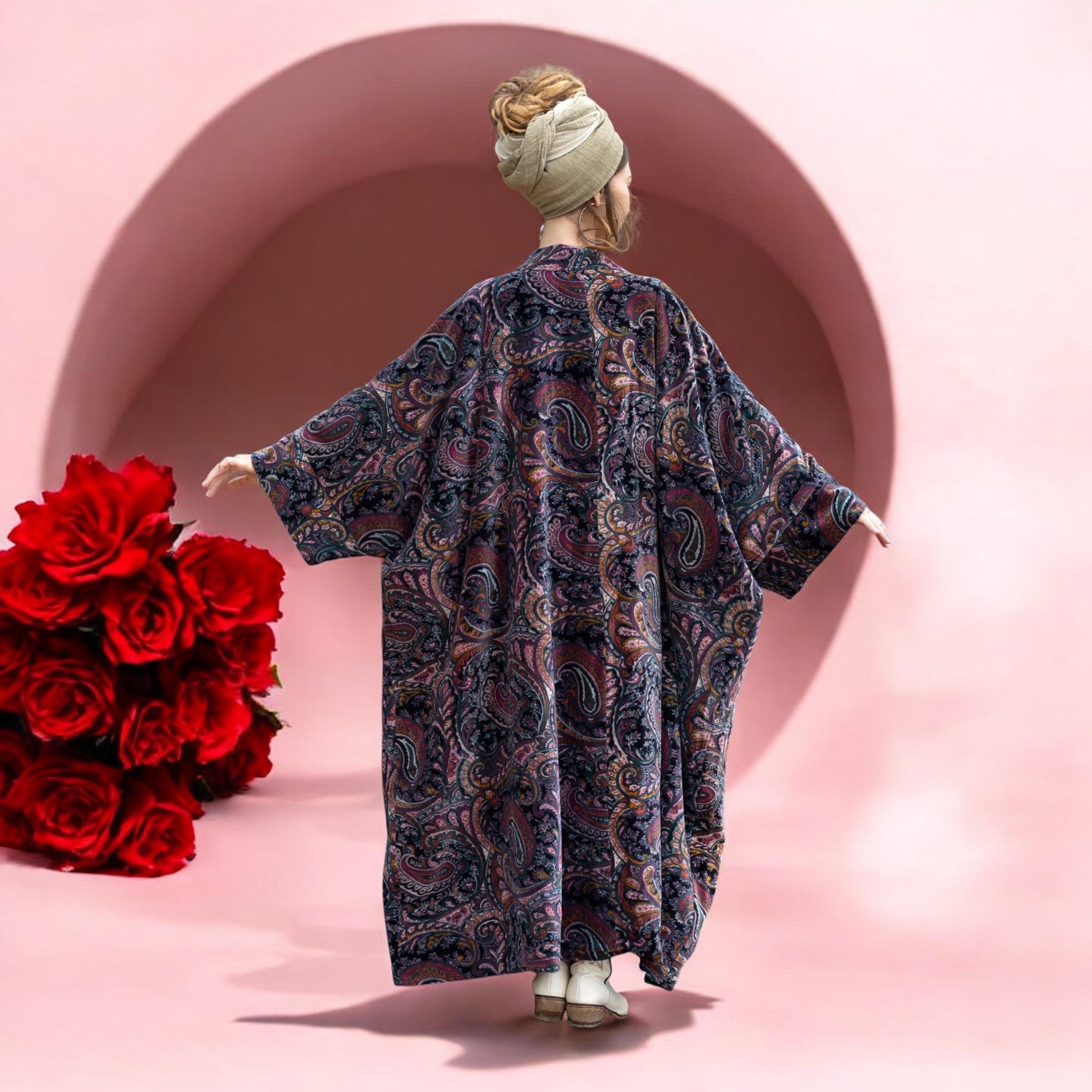 Velvet Kimono Robe: Luna Paisley Boho Duster, Cotton-Lined Wrap – Harper Jade